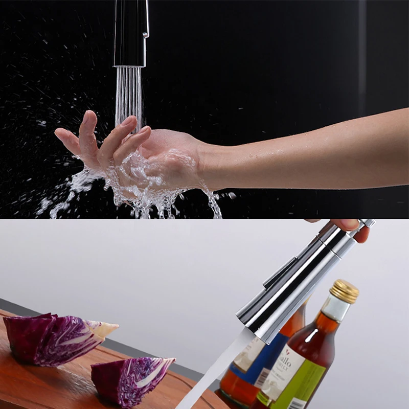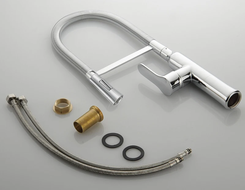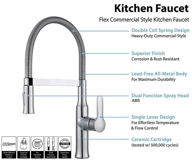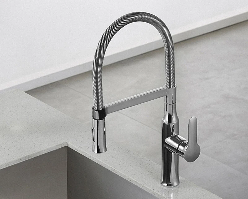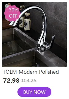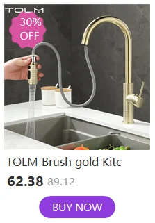 TOLM robinet d’évier de cuisine en laiton chromé poli moderne en nickel brossé, mitigeur d’évier à poignée unique, bec pivotant, mitigeur d’évier