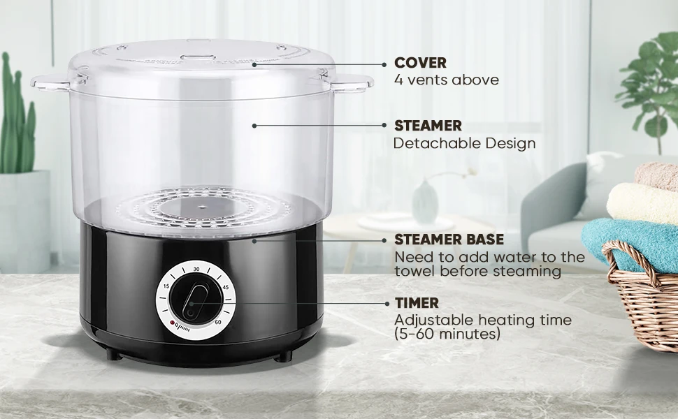 ☀Facile à nettoyer: conception fendue, le cuiseur à vapeur est séparé de la structure de base, il est plus pratique à nettoyer, et vous pouvez l’utiliser en toute confiance. Il suffit de pré-tremper la serviette, de la sécher, de la rouler, de placer la serviette sur le défroisseur amovible dans l’appareil et de démarrer l’appareil pour commencer à chauffer la serviette.