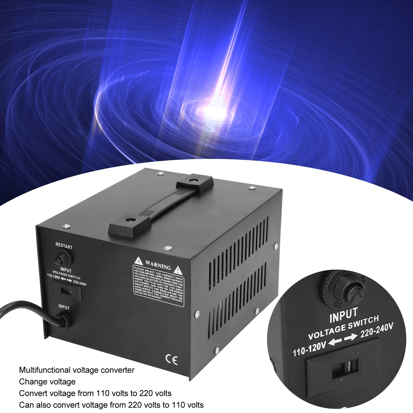 1. Voltage Conversion: This power transformer is used to change the voltage from 110 volts to 220 volts and also to convert the voltage from 220 volts to 110 volts.