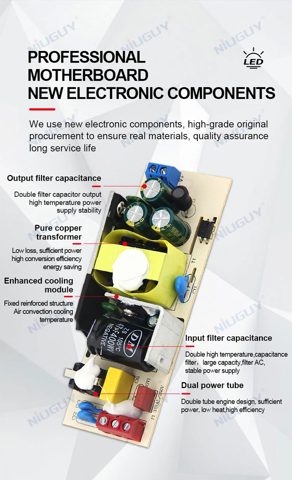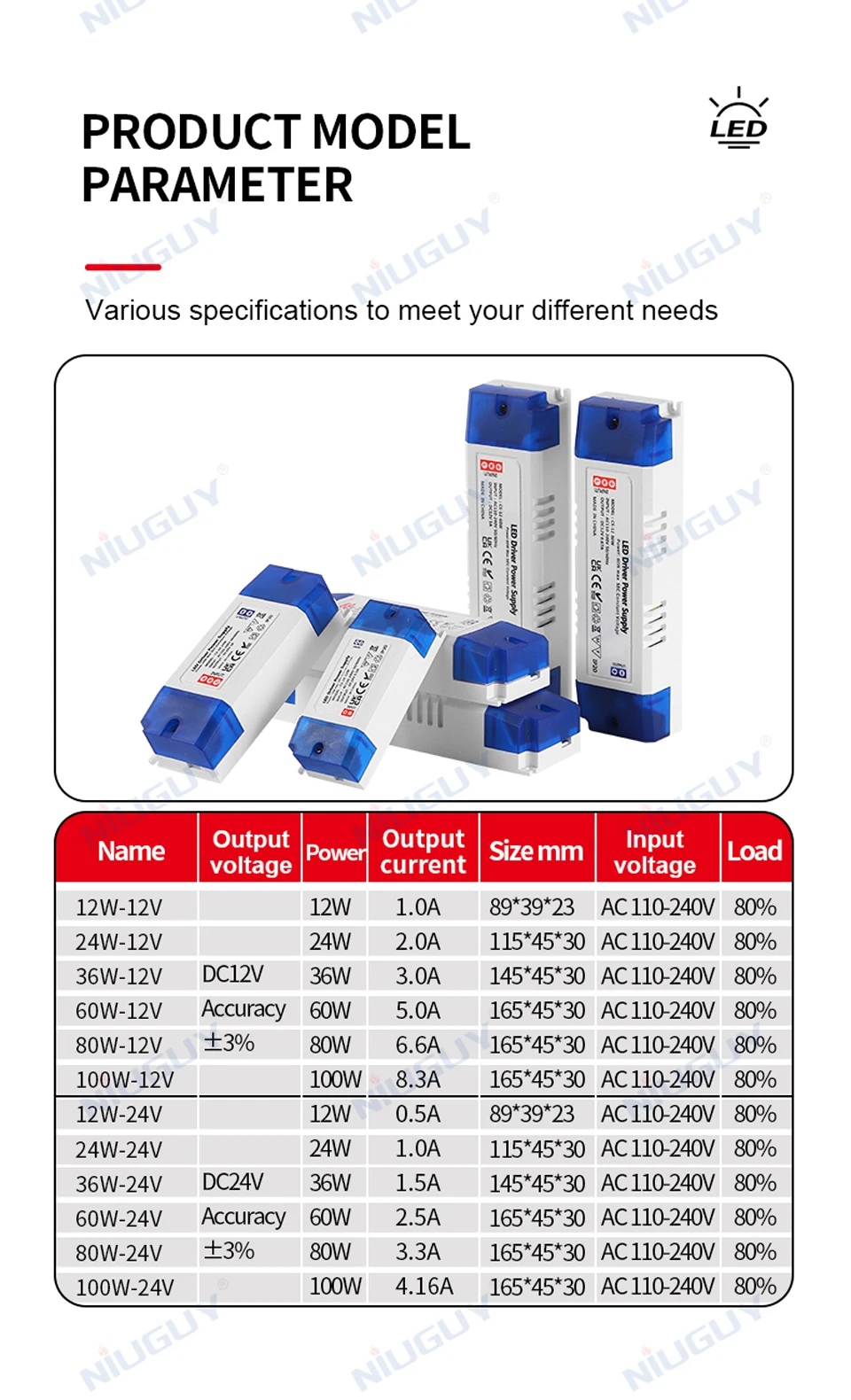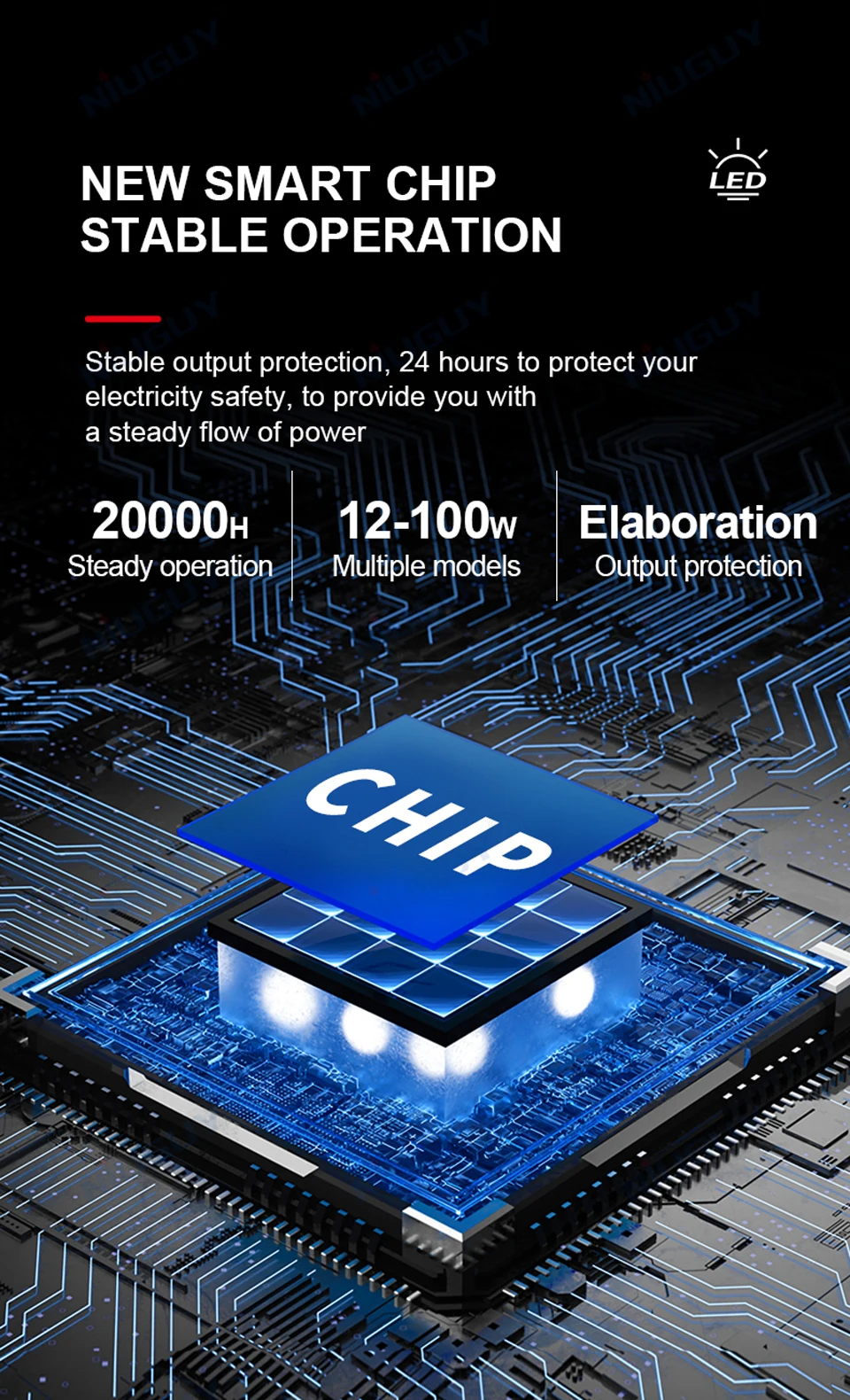 1.Puissance : 12W / 24W / 36W / 60W / 80W/ 100W