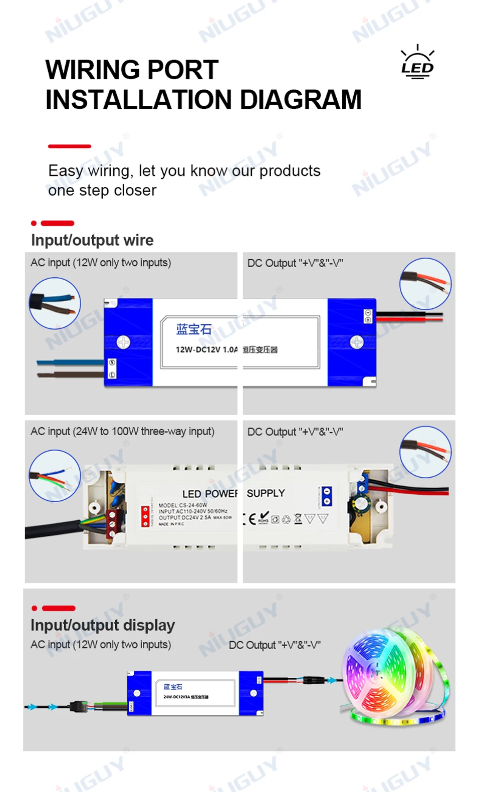 Remarque : L’alimentation de notre magasin est une alimentation à tension constante et ne prend pas en charge la gradation. Si vous devez dimmerer la lumière, veuillez acheter un variateur séparément.