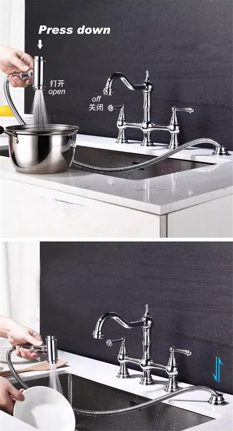 Robinet de cuisine en or Tuqiu avec pommeau de douche à main robinet de remplissage de pot monté sur le pont or brossé chaud froid noir évier robinet bec laiton