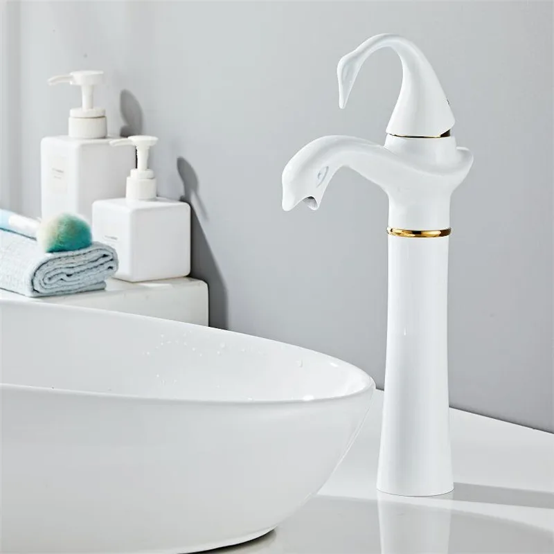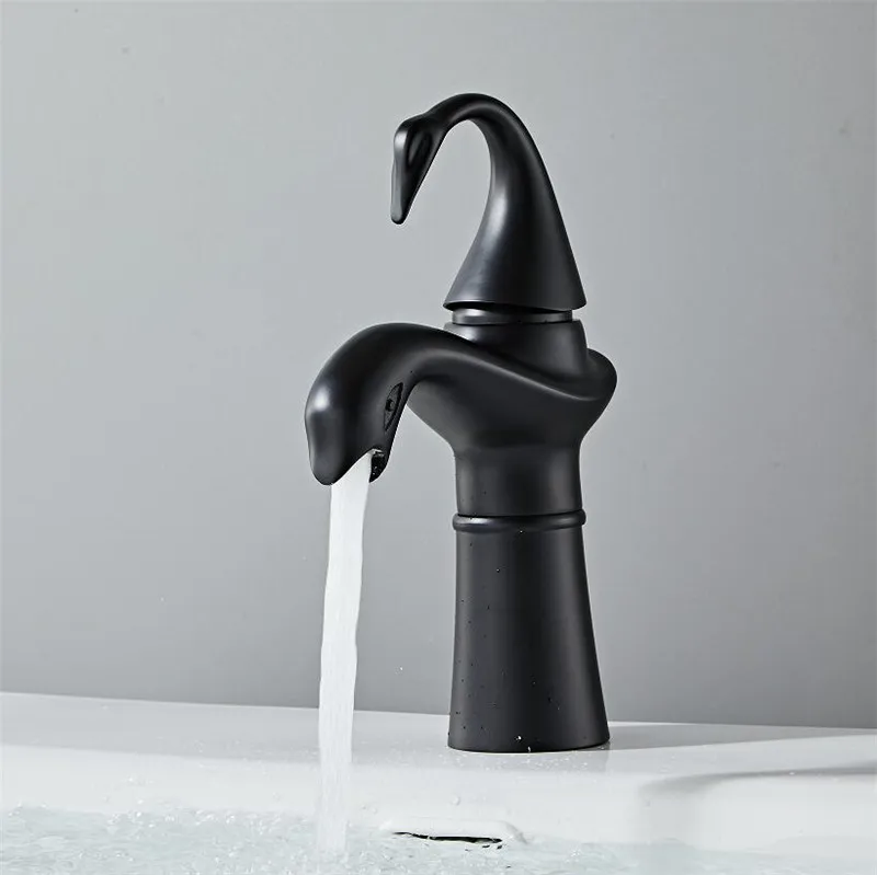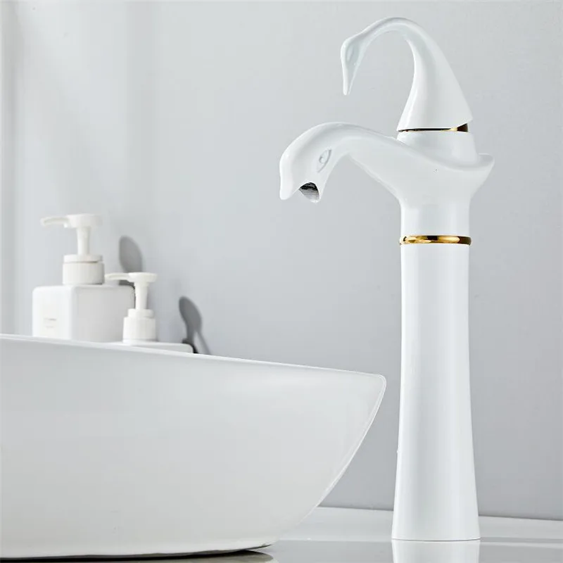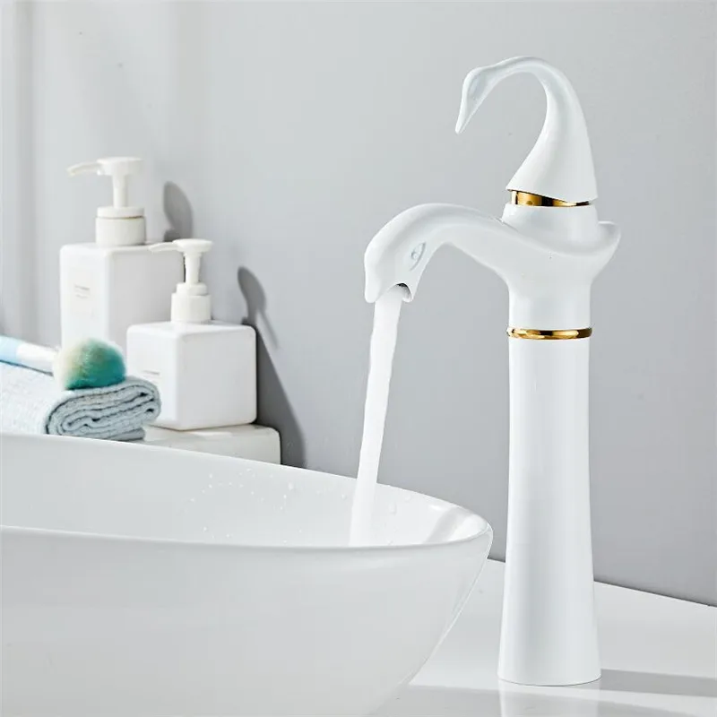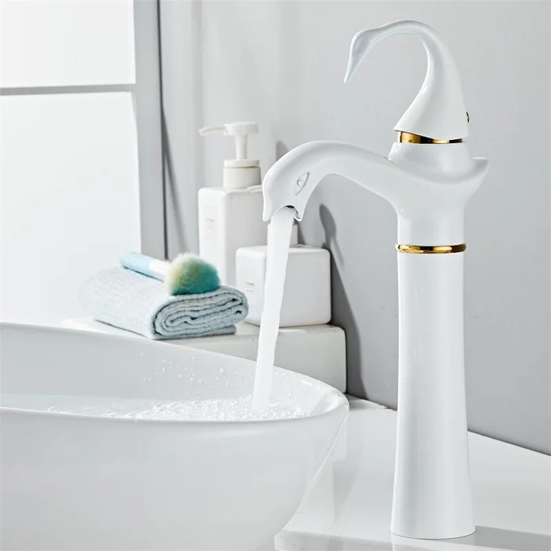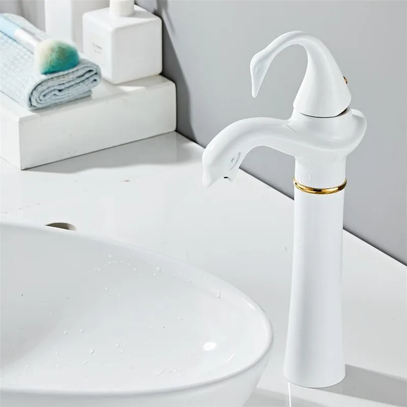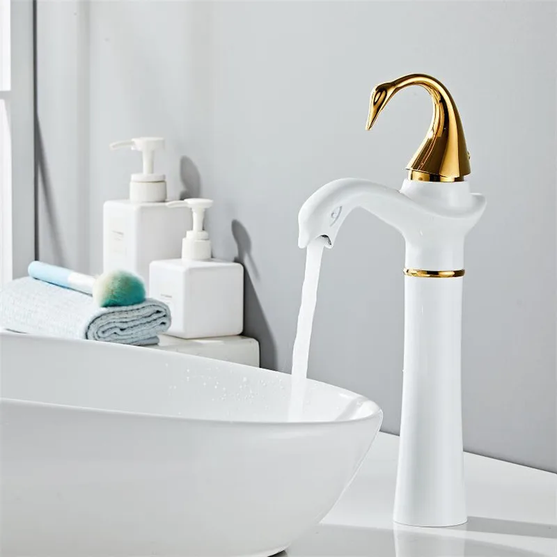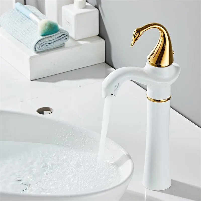Tuqiu – robinet de lavabo haut or blanc cygne, robinet de salle de bains en laiton noir, robinet mitigeur de lavabo de salle de bains, robinet d’évier chaud et froid