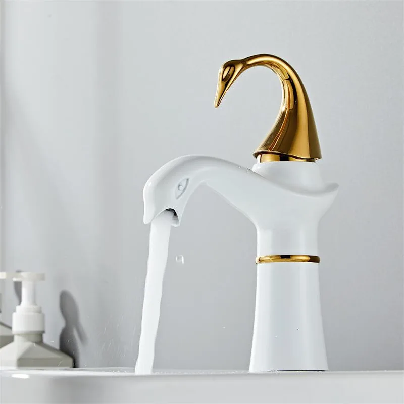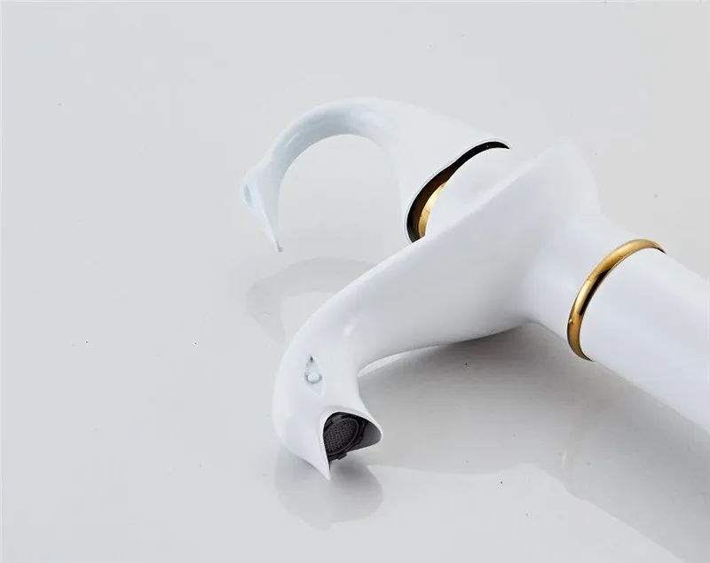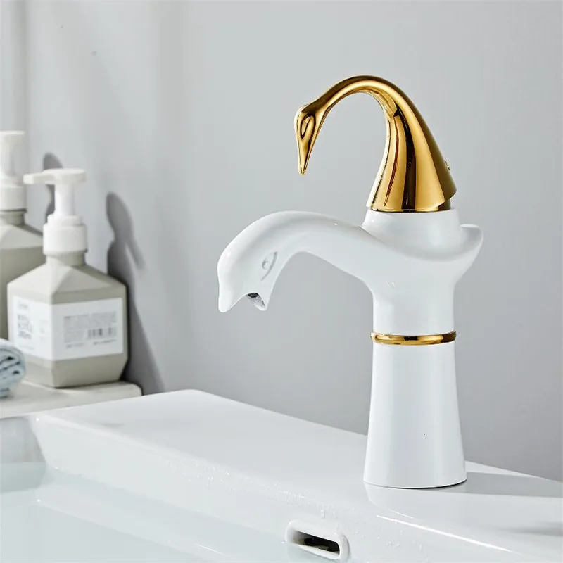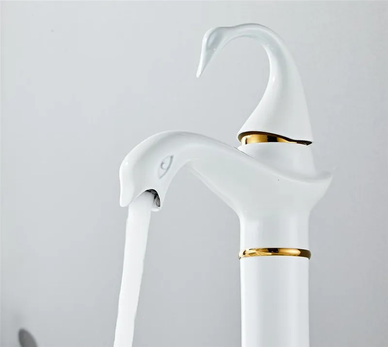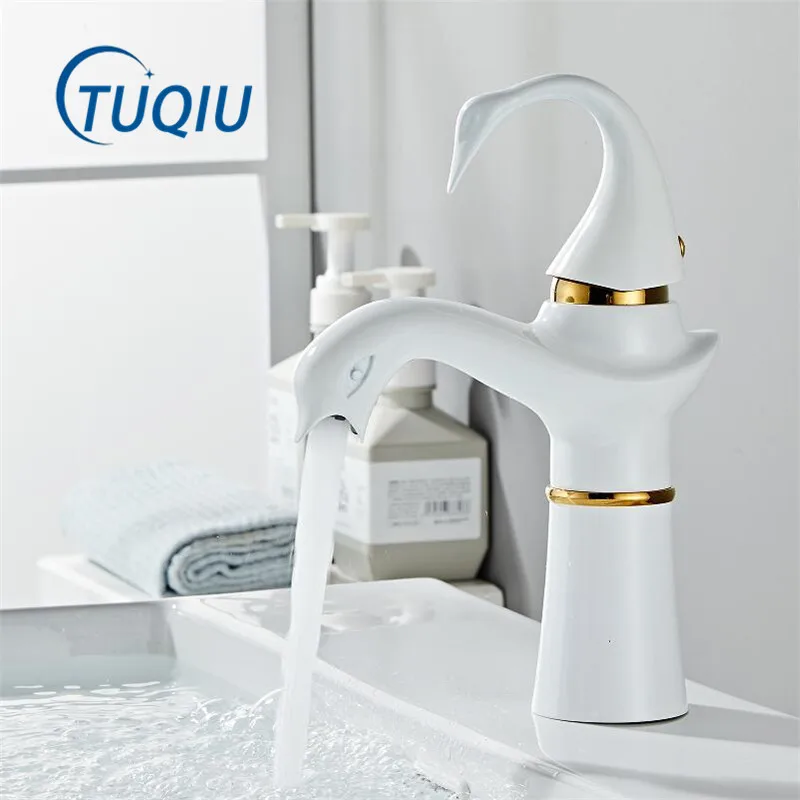 Tuqiu grand robinet de lavabo or blanc cygne robinet en laiton noir robinet de salle de bains robinet de lavabo de salle de bains mitigeur robinet d’évier chaud et froid