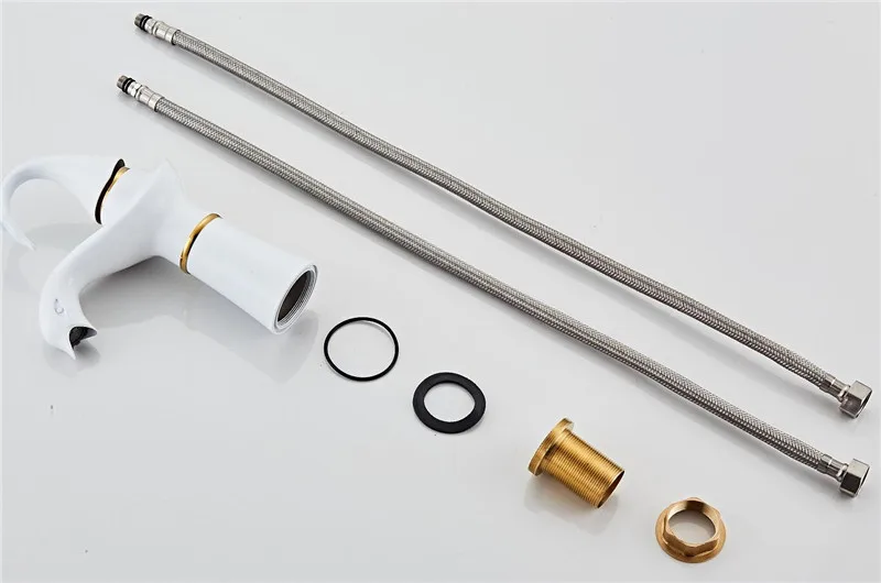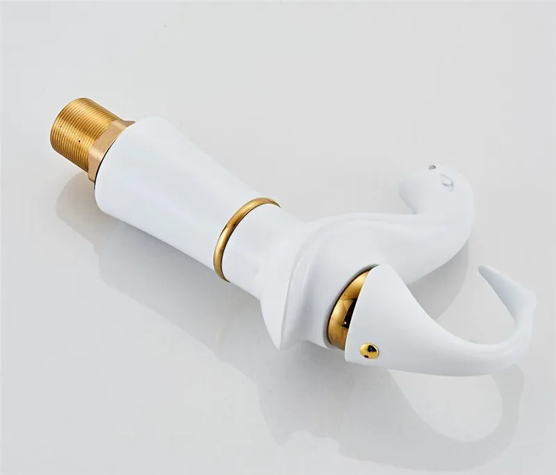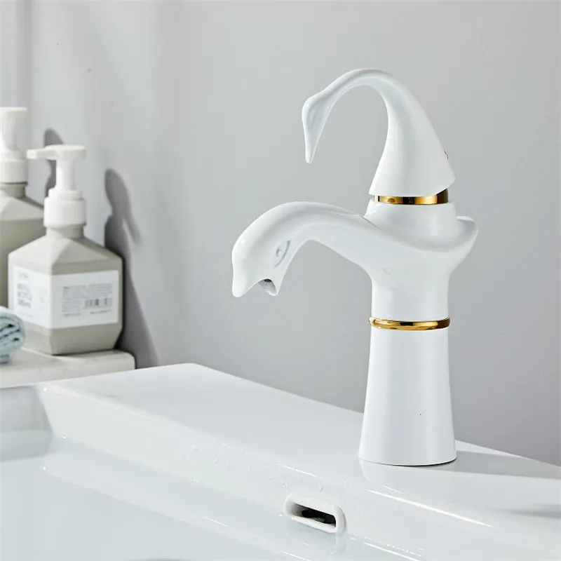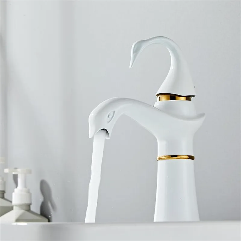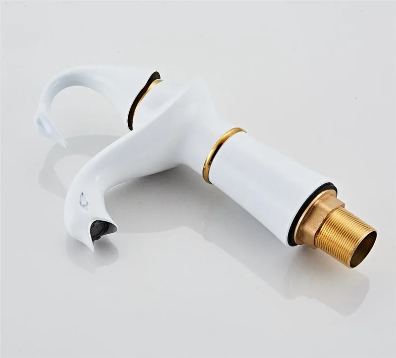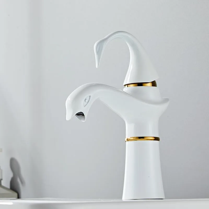 Tuqiu grand robinet de lavabo or blanc cygne robinet en laiton noir robinet de salle de bains robinet de lavabo de salle de bains mitigeur robinet d’évier chaud et froid