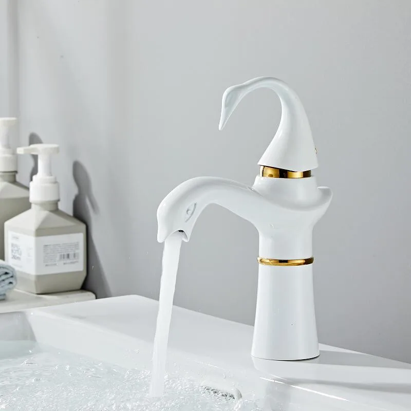 Tuqiu robinet de grand bassin or blanc cygne robinet en laiton noir, robinet de salle de bains, lavabo robinet mitigeur, robinet d’évier chaud-froid