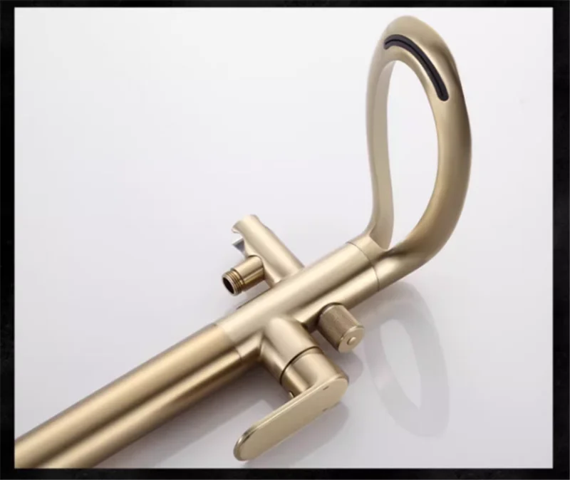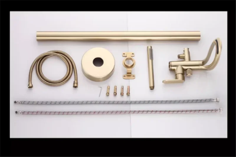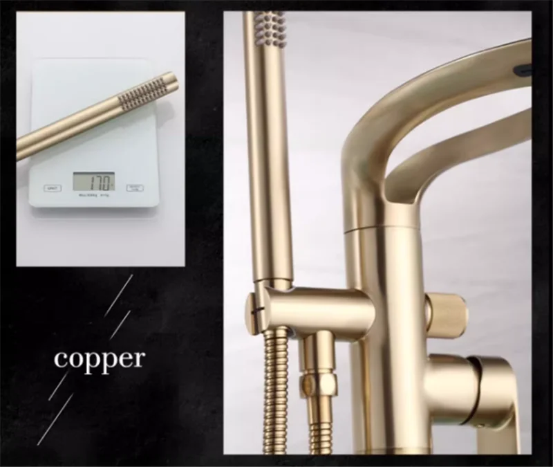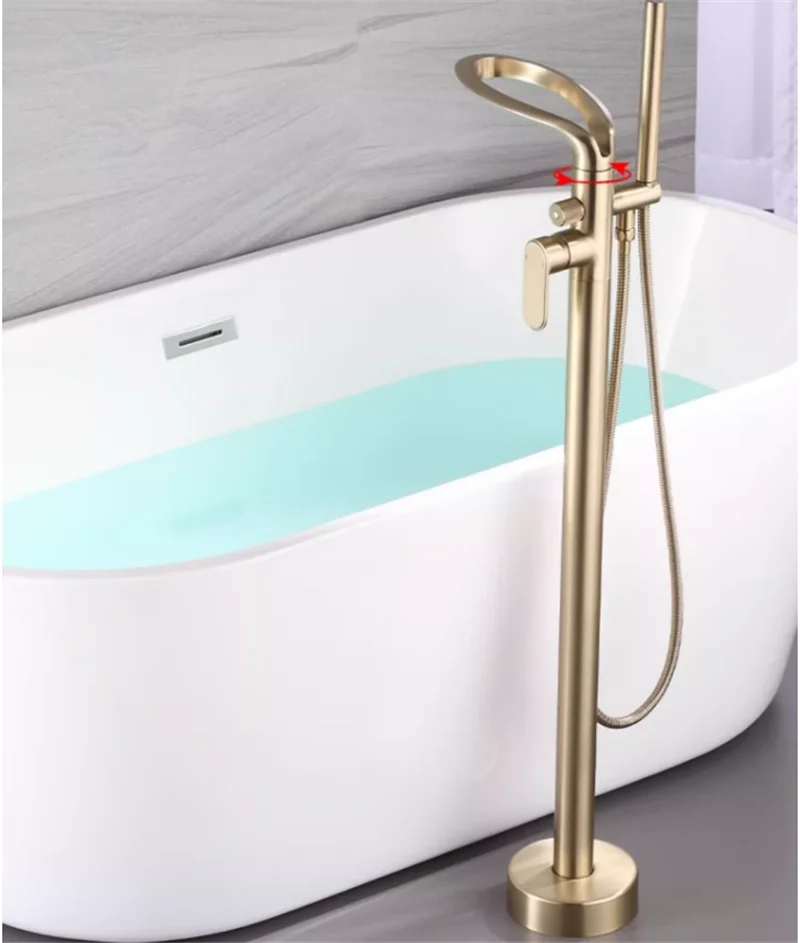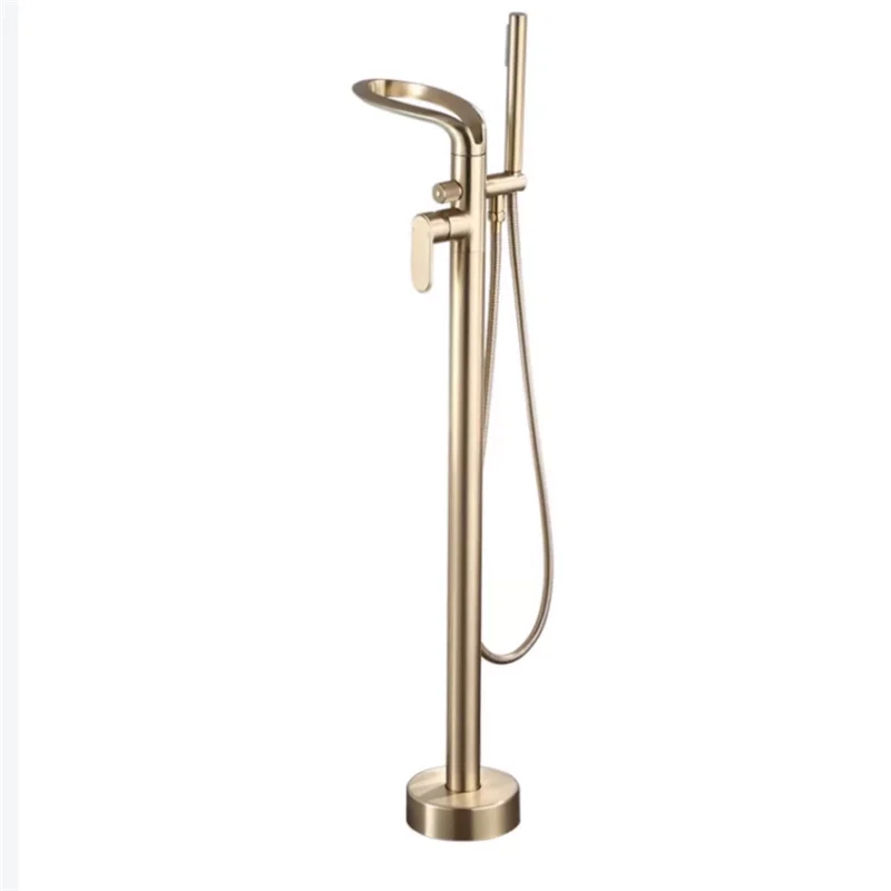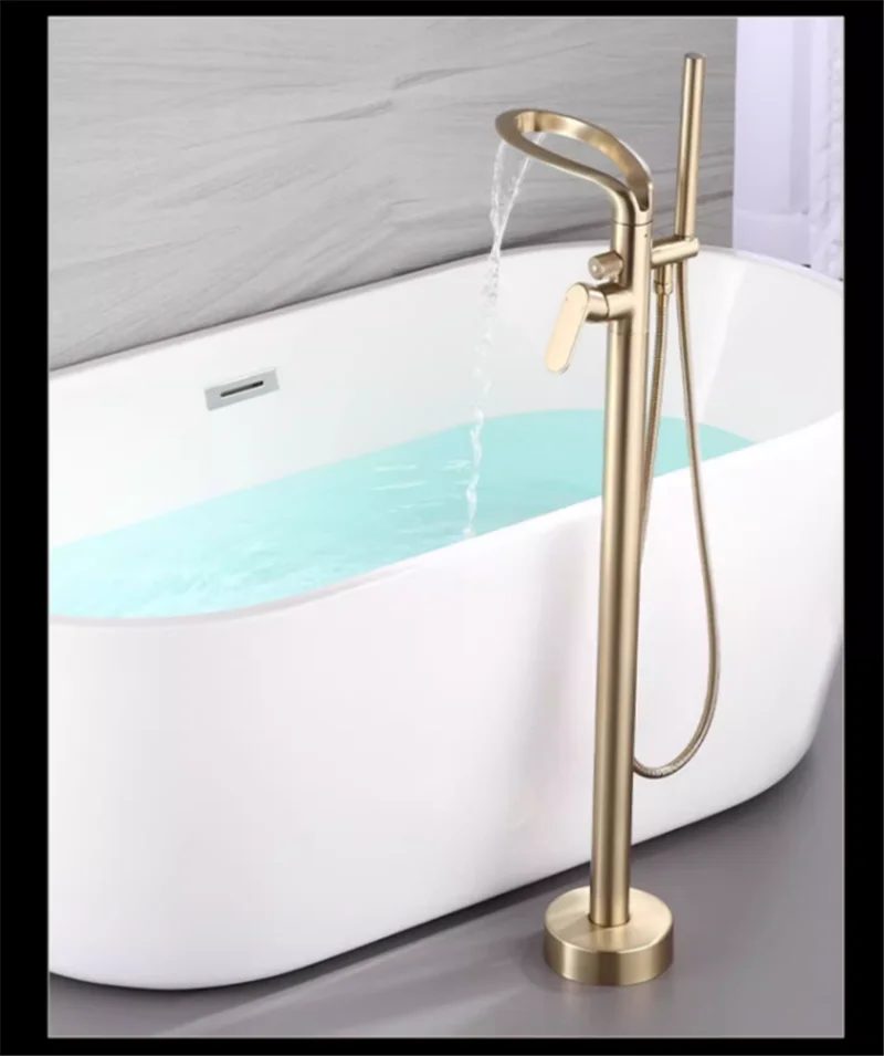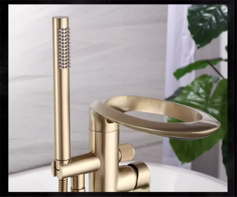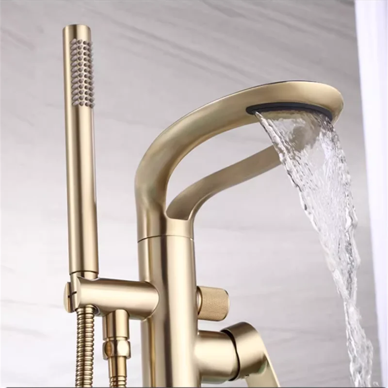 Tuqiu Brushed Gold Bathroom Bathtub Faucet + Handheld Shower Free Standing Luxury Waterfll BathTub Mixer Taps Floor Mounted