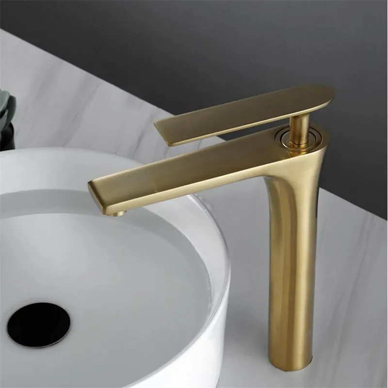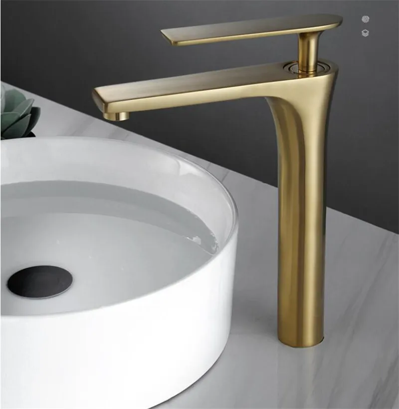 Tuqiu robinet de salle de bains en laiton doré brossé robinet de lavabo de salle de bains mélangeur d’eau froide et chaude robinet d’évier monté sur le pont noir/ChromeTap