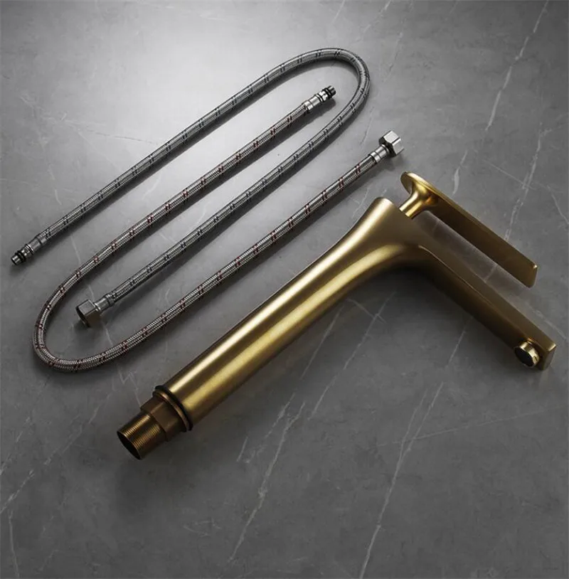 Tuqiu robinet de salle de bains en laiton doré brossé robinet de lavabo de salle de bains mélangeur d’eau froide et chaude robinet d’évier monté sur le pont noir/ChromeTap