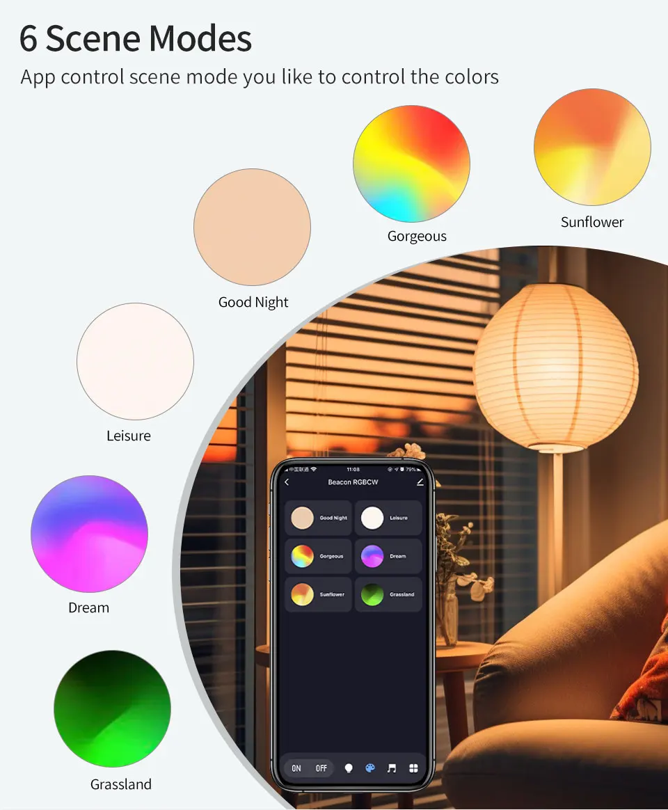 16 millions de couleurs RGBCW couleur réglable, peut être facilement changé selon votre humeur