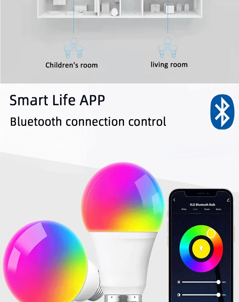 • Contrôle par application : l’application Tuya Smart LED Bulb E27 220V vous permet de contrôler la luminosité, la couleur et la musique de l’ampoule d’importe où, à tout moment.