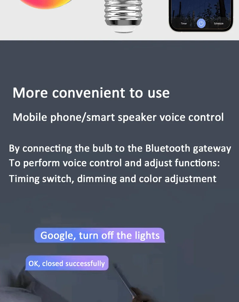 - Features 3: Smart Bulb E27 9W WiFi Bubble Dimmable LED Light Voice Control Bulb RGBCW 100-240V Smart Life Bulb Support Alexa Google Home