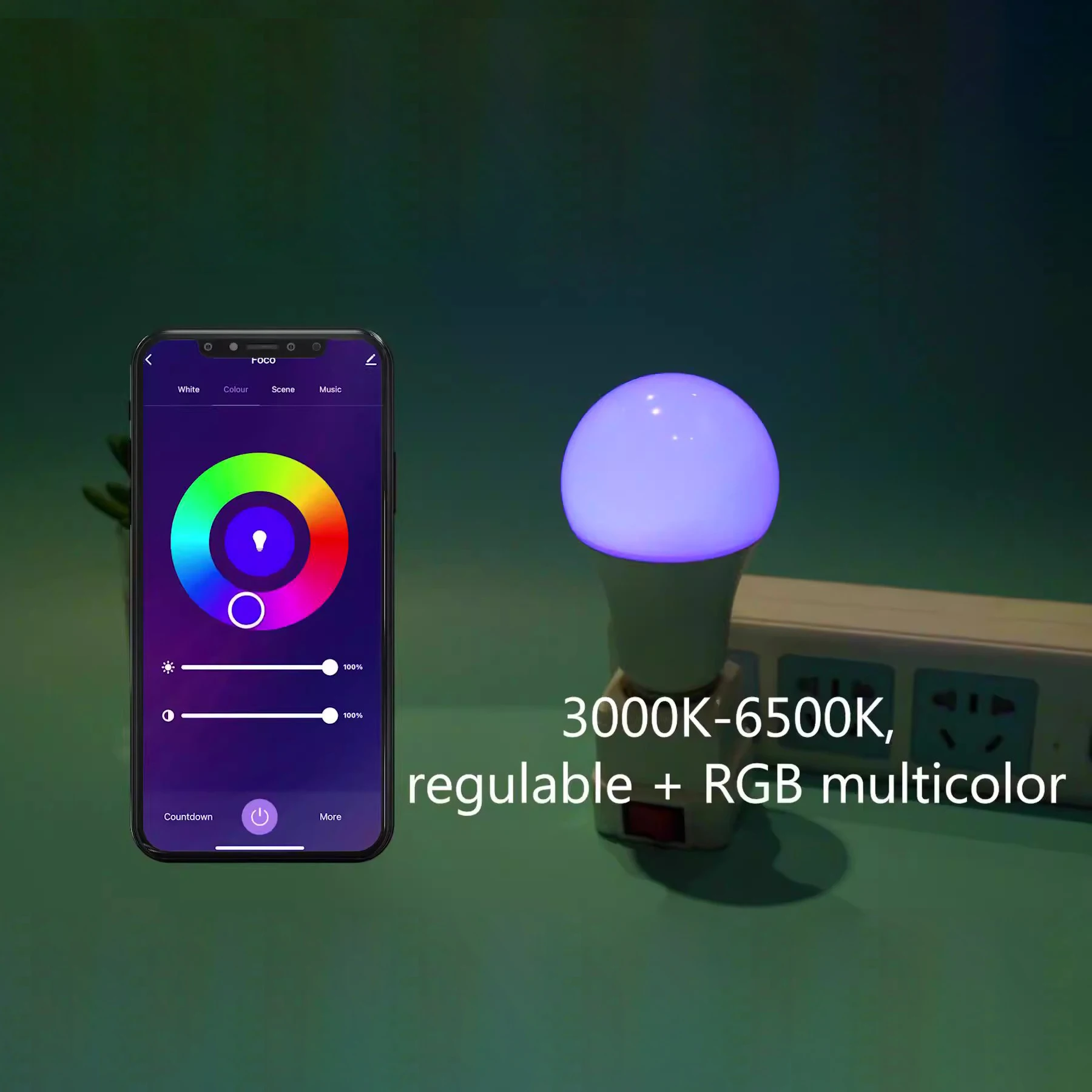 • Connectivité Bluetooth : se connecte à votre téléphone via Bluetooth, vous permettant de contrôler la couleur et la musique de l’ampoule depuis votre téléphone.