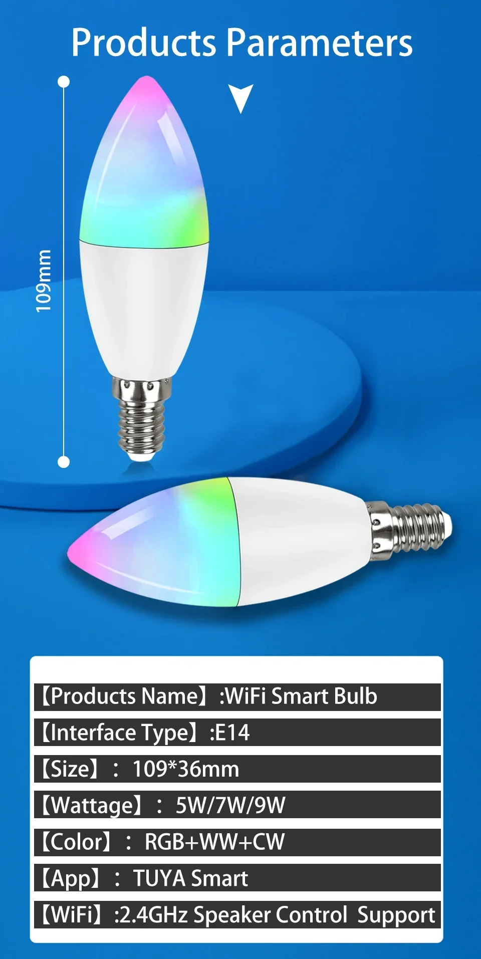 - Numéro de Modèle: Tuya Smart Wifi bulb