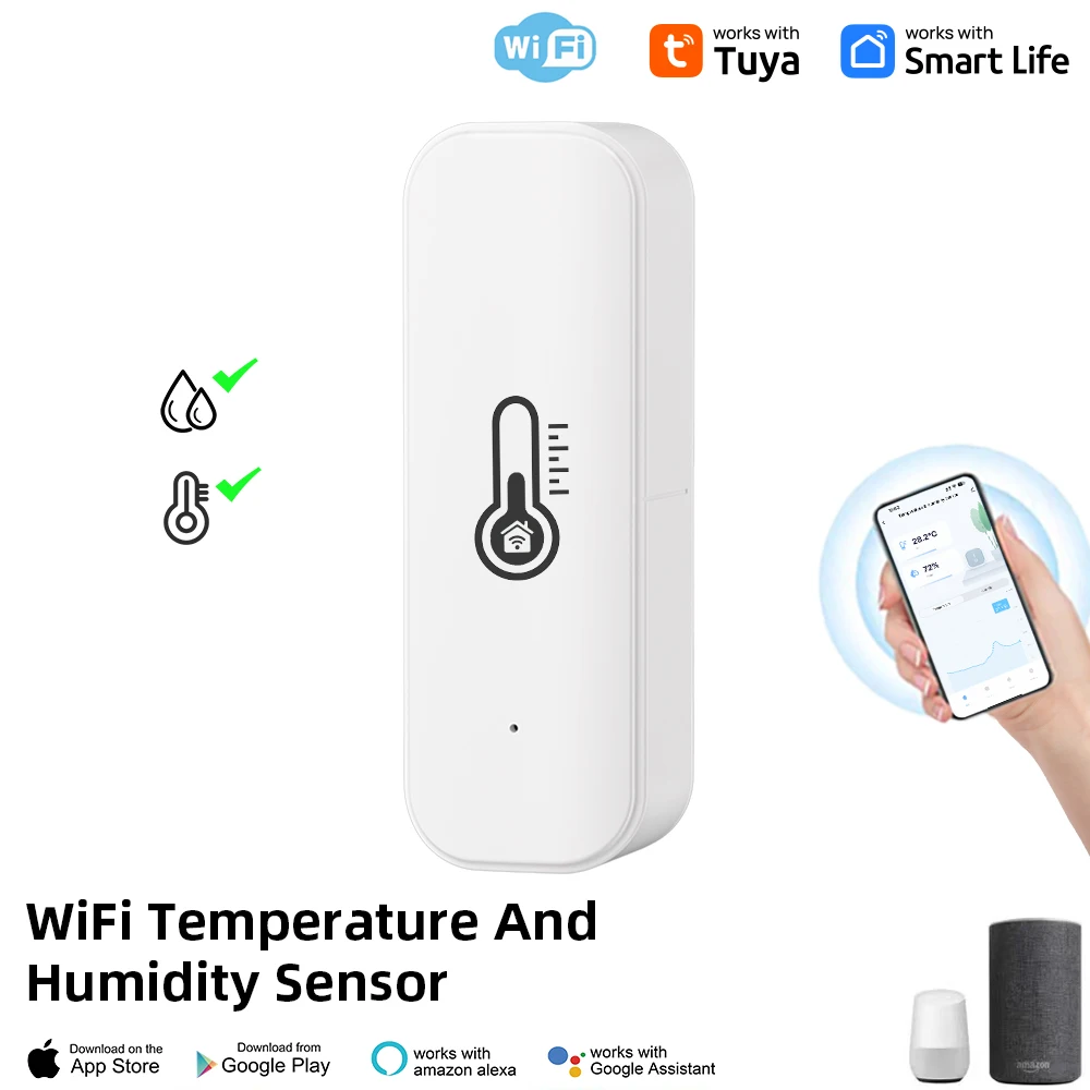 Tuya WiFi capteur d’humidité de la température intelligente hygromètre domestique intérieur APP moniteur à distance Var Smart Life fonctionne avec Alexa Google