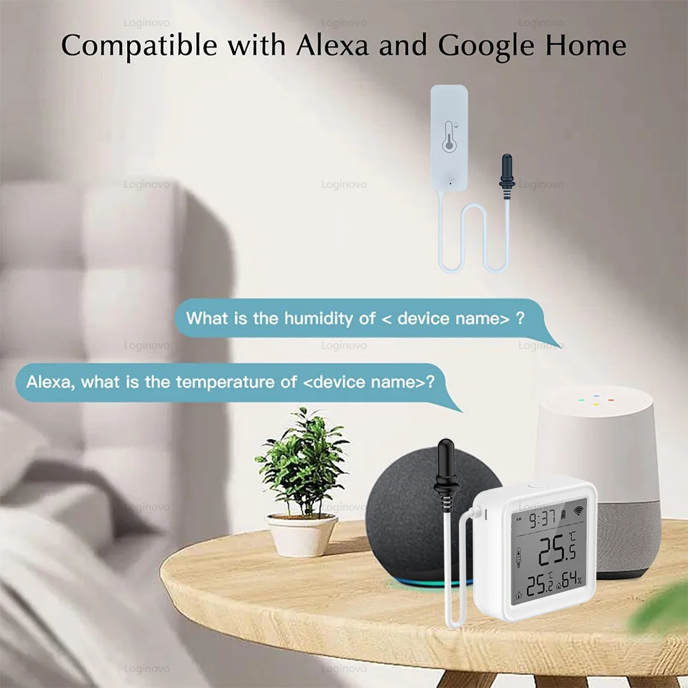 • Il suffit de demander et vous le dit : il fonctionne avec Alexa et Home Assistant. Juste dites, « Alexa, quelle est la température actuelle,? » et vous donnezrai le numéro exact. C’est comme une aide à la maison intelligente!