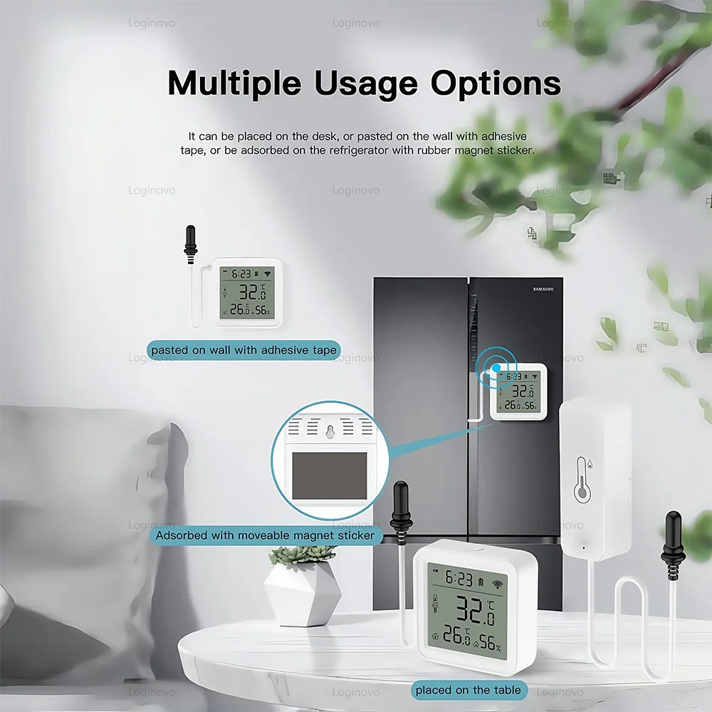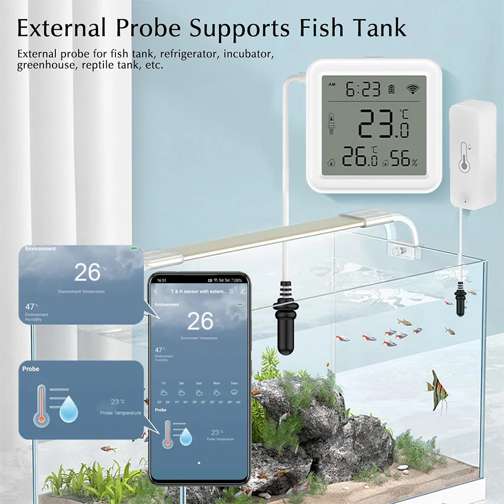 Tuya – capteur intelligent de température et d’humidité Wifi, avec sonde externe, hygromètre, pour réfrigérateur, piscine d’eau, Thermostat, domotique