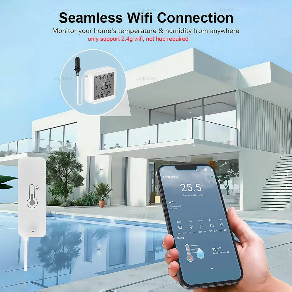 Tuya – capteur intelligent de température et d'humidité Wifi, avec sonde externe, hygromètre, pour réfrigérateur, piscine d'eau, Thermostat, domotique