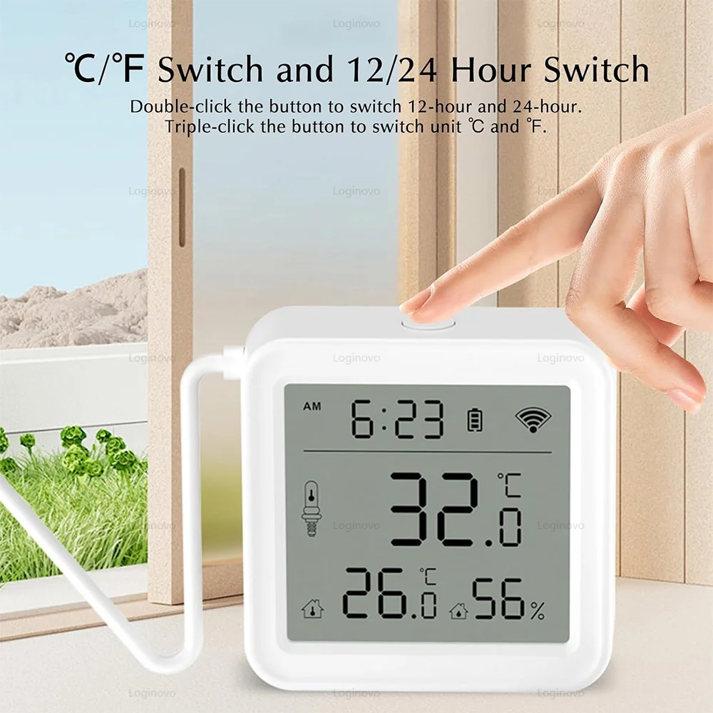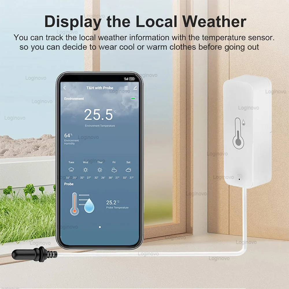 • Capteur de température et d'humidité externe pratique pour surveiller les environnements comme le réfrigérateur ou l'aquarium