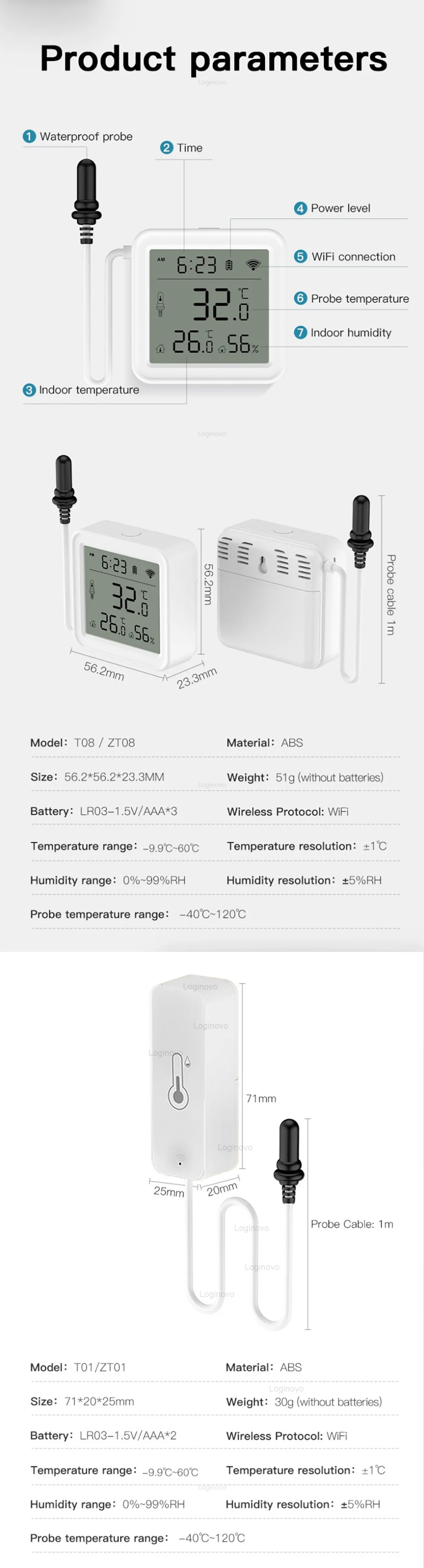 • Capteur de température et d'humidité externe pratique pour surveiller les environnements comme le réfrigérateur ou l'aquarium