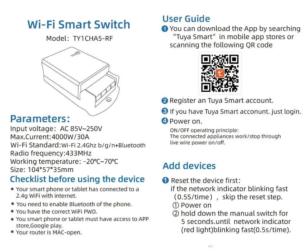 - Numéro de Modèle: Tuya 30A Smart Relay Module