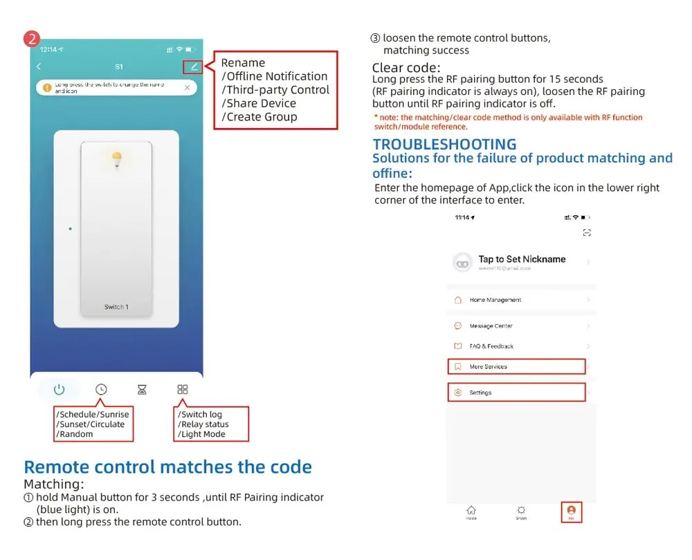 * Télécommande RF: Allumer/éteindre la télécommande RF 433MHz à l’intérieur, ne prend en charge que le code d’apprentissage 433MHz.