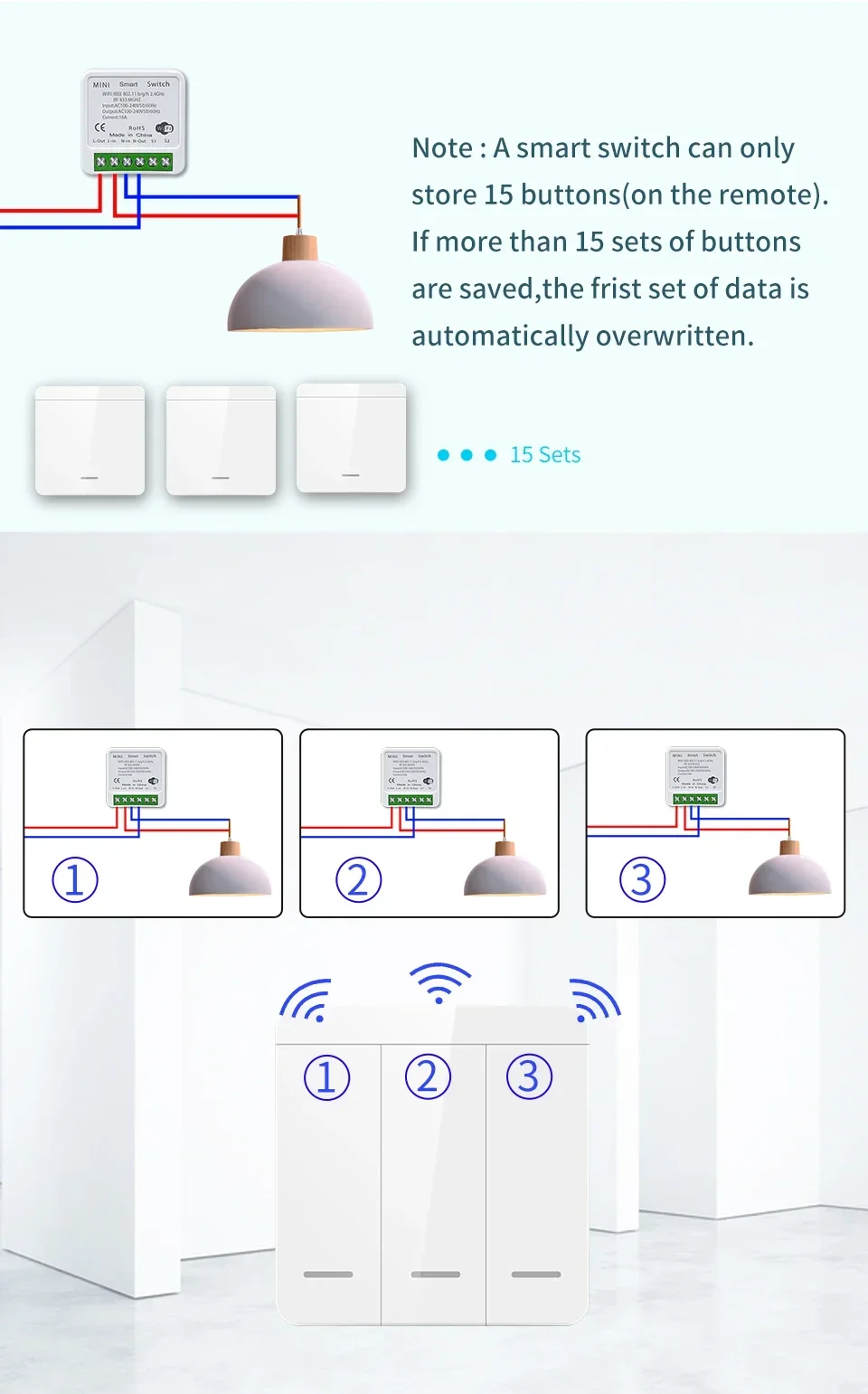 Le contrôleur de relais est wifi + RF, l’interrupteur mural est uniquement RF. L’interrupteur mural lui-même ne peut pas contrôler l’allumage des lumières éteintes. Il doit fonctionner avec le récepteur wifi + RF ensemble.