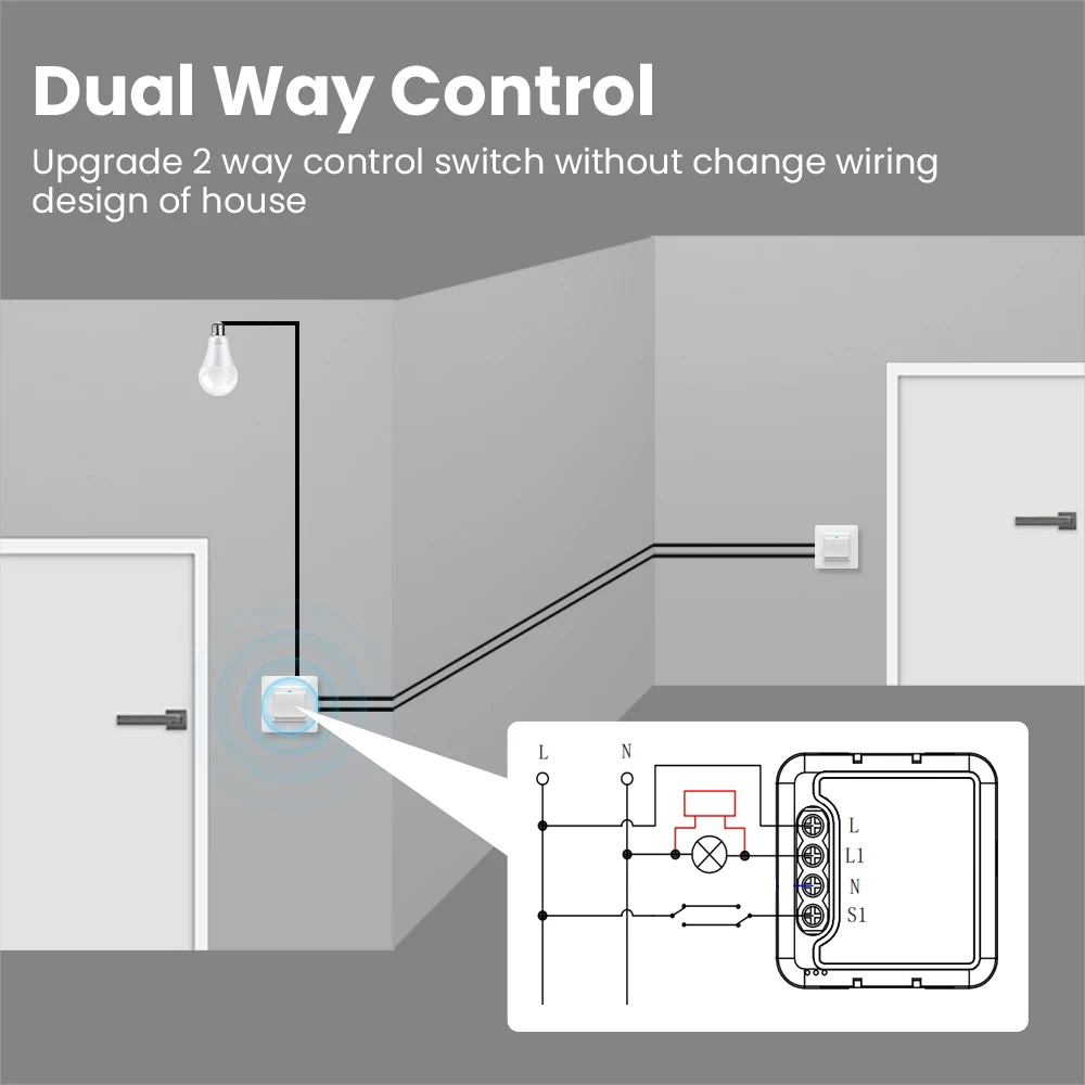 【Contrôle double voie】 Peut entièrement mettre à niveau le commutateur de commande à 2 voies sans modifier la conception du câblage de la maison.