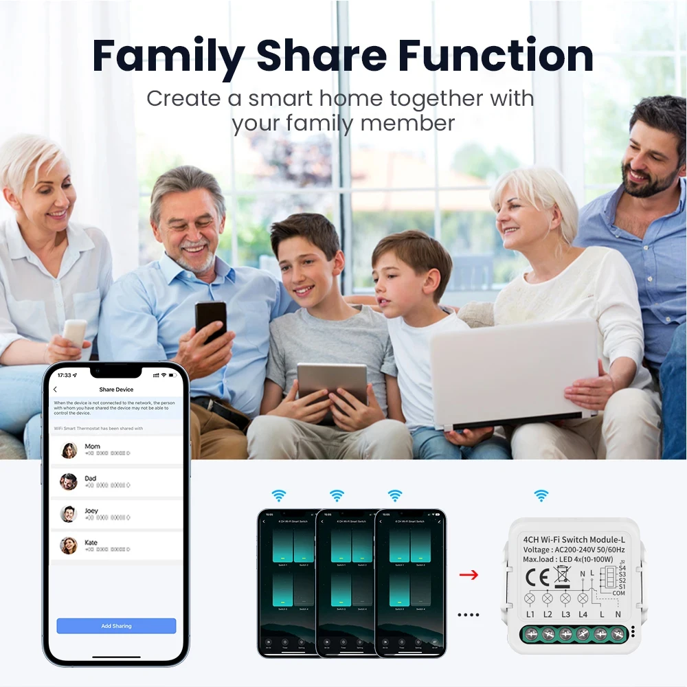 【 Fonction de partage familiale】 Vous pouvez partager l’interrupteur à votre famille avec la droite limitée, créez une maison intelligente ensemble avec votre membre familial.
