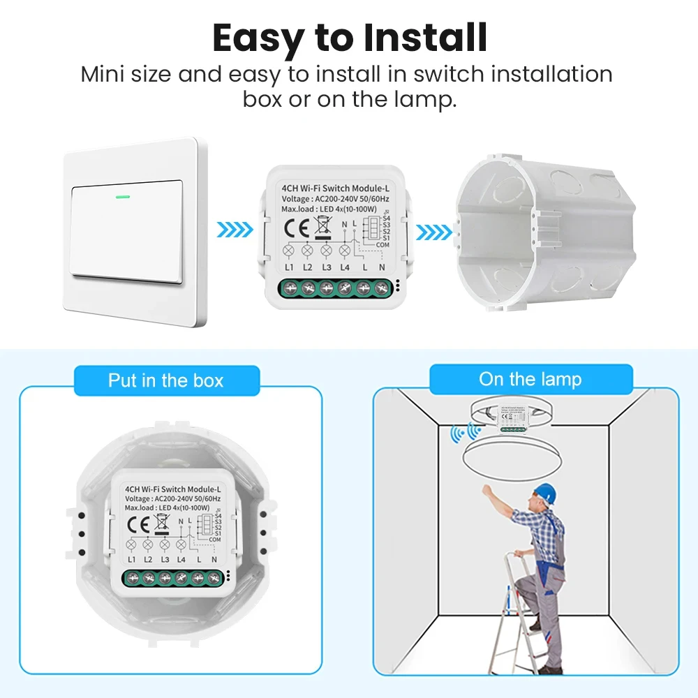 【Facile à installer】Le module de commutation de taille mini peut être installé facilement dans le boîtier d’installation de l’interrupteur ou sur la lampe.(Remarque : veuillez éteindre l’électricité pendant l’installation).