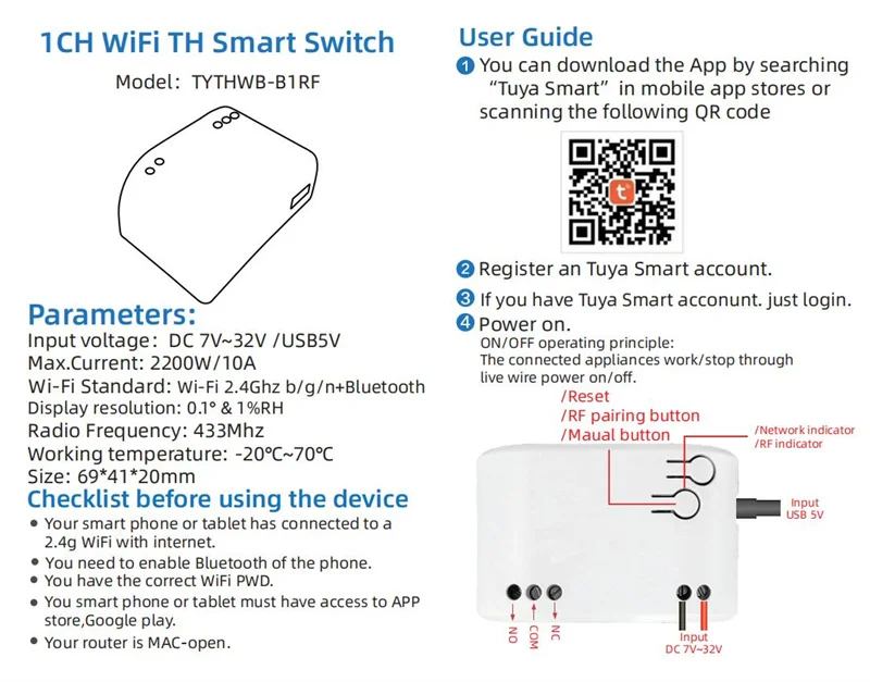 Cet article est un interrupteur universel permettant à votre système de maison intelligente d’allumer/éteindre à distance et automatiquement tous les appareils via l’application téléphonique.Lorsque la température de l’environnement tombe dans la plage, il allumera ou éteindra automatiquement les appareils connectés.Il prend également en charge la synchronisation de l’allumage/extinction des appareils et prend en charge le préréglage de la plage de température.Travaillez avec le commutateur intelligent TH-10 et le capteur, vous pouvez rendre votre maison plus intelligente.