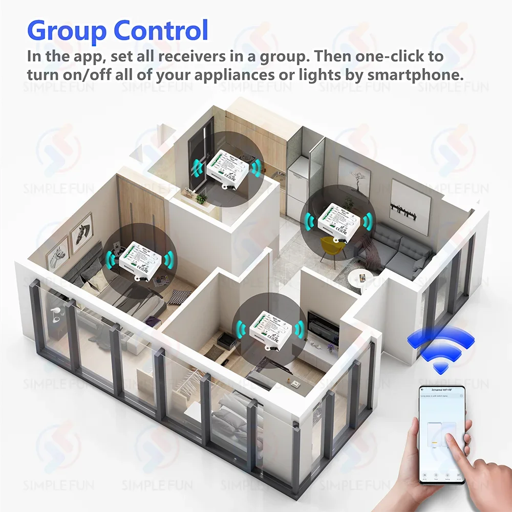 For example, all smart lamps can be set as a group and turned off with one click. One smart switch can be controlled by multiple mobile phones. Share it with your family and make it easy for everyone to control. Great for hard-to-reach lights without a switch.