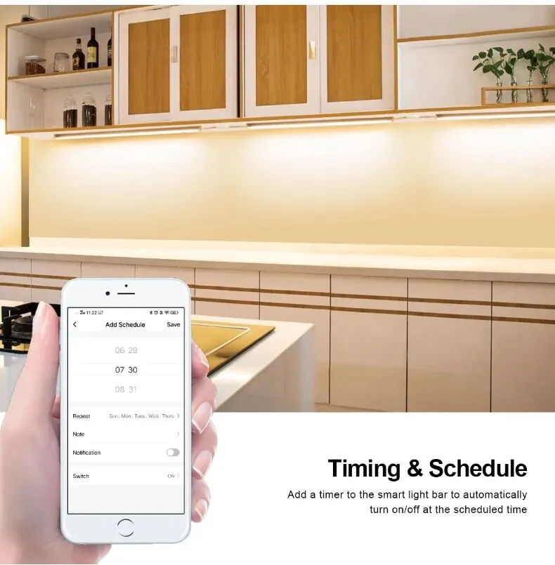 【Télécommande】 A même vous ne sont pas à la maison, vous pouvez contrôler votre bande LED intelligente marche/arrêt avec votre téléphone via l’application Tuya ou Smart Life.Réglez facilement l’horaire pour votre bande LED intelligente.Personnalisez votre système d’éclairage domestique, comme une mise en place des lumières pour venir au crépuscule ou éteindre au lever du soleil.Vous pouvez créer un groupe pour tous sur votre bande LED intelligente et le contrôle tous avec un seul command.Fonctionne avec le réseau Wi-Fi 2,4 GHz.