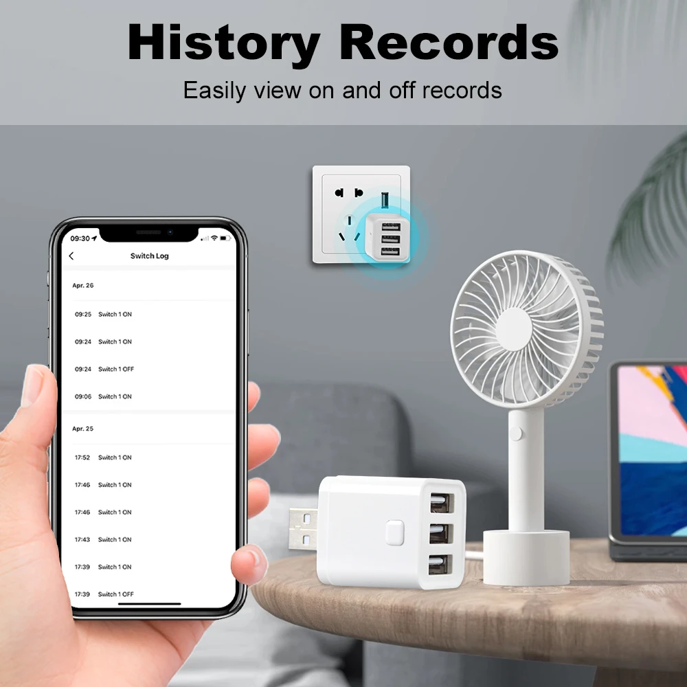 5.Voice Control L’adaptateur USB intelligent est parfait compatible avec Amazon Alexa, Google Home. Juste simplement donnez un commandement vocal à votre Alexa, Google Home Assistant pour contrôler vos appareils lorsque vous êtes en déplacement.