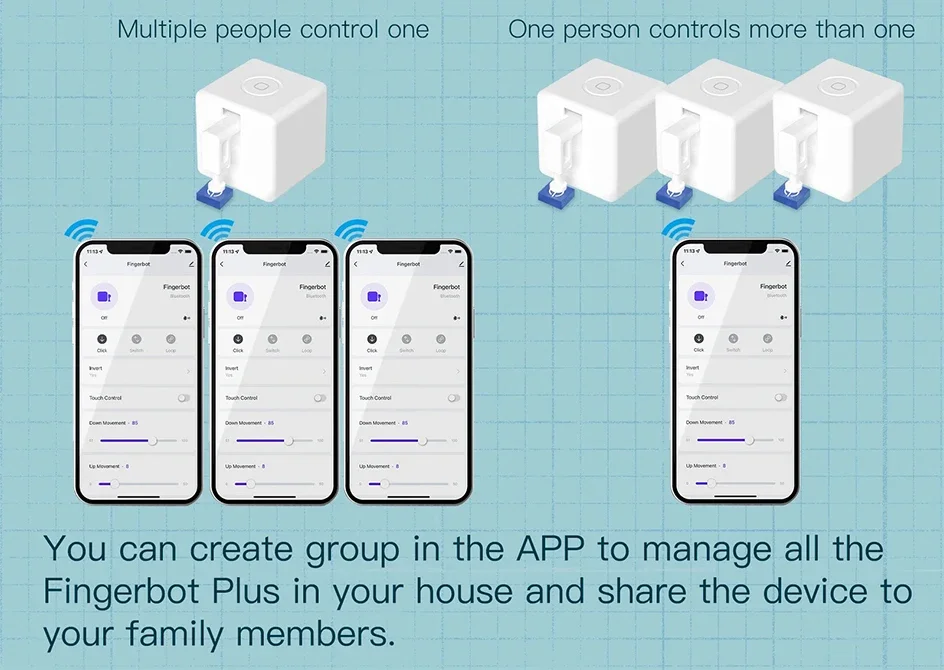 Vous pouvez créer un groupe dans l’application pour gérer tous les Fingerbot Plus de votre maison et partager l’appareil avec les membres de votre famille.