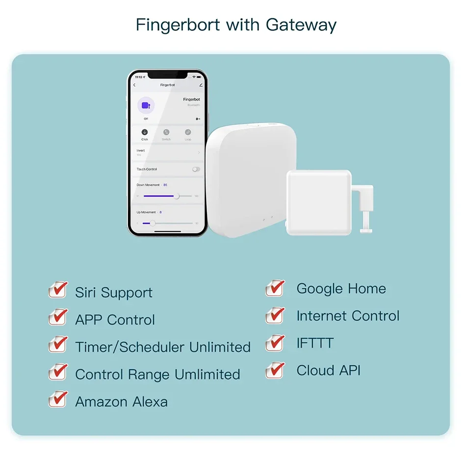3. Contrôlez intelligemment vos appareils traditionnels via la commande vocale par Alexa, Google Assistant et Siri, activez l’aspirateur avec la voix, et allumez à distance votre PC de bureau ou vos appareils traditionnels avec un interrupteur ou un bouton BluetoothMoyeu requis. Profitez d’un style de vie intelligent sans effort avec ce Fingerbot Plus intelligent; Minutez votre propre horaire pour que des appareils spécifiques s’allument/s’éteignent à une heure prédéfinie dans l’application; partage de l’appareil avec les membres de votre famille et le contrôle du groupe sont tous deux disponibles dans l’application avec un simple robinet.