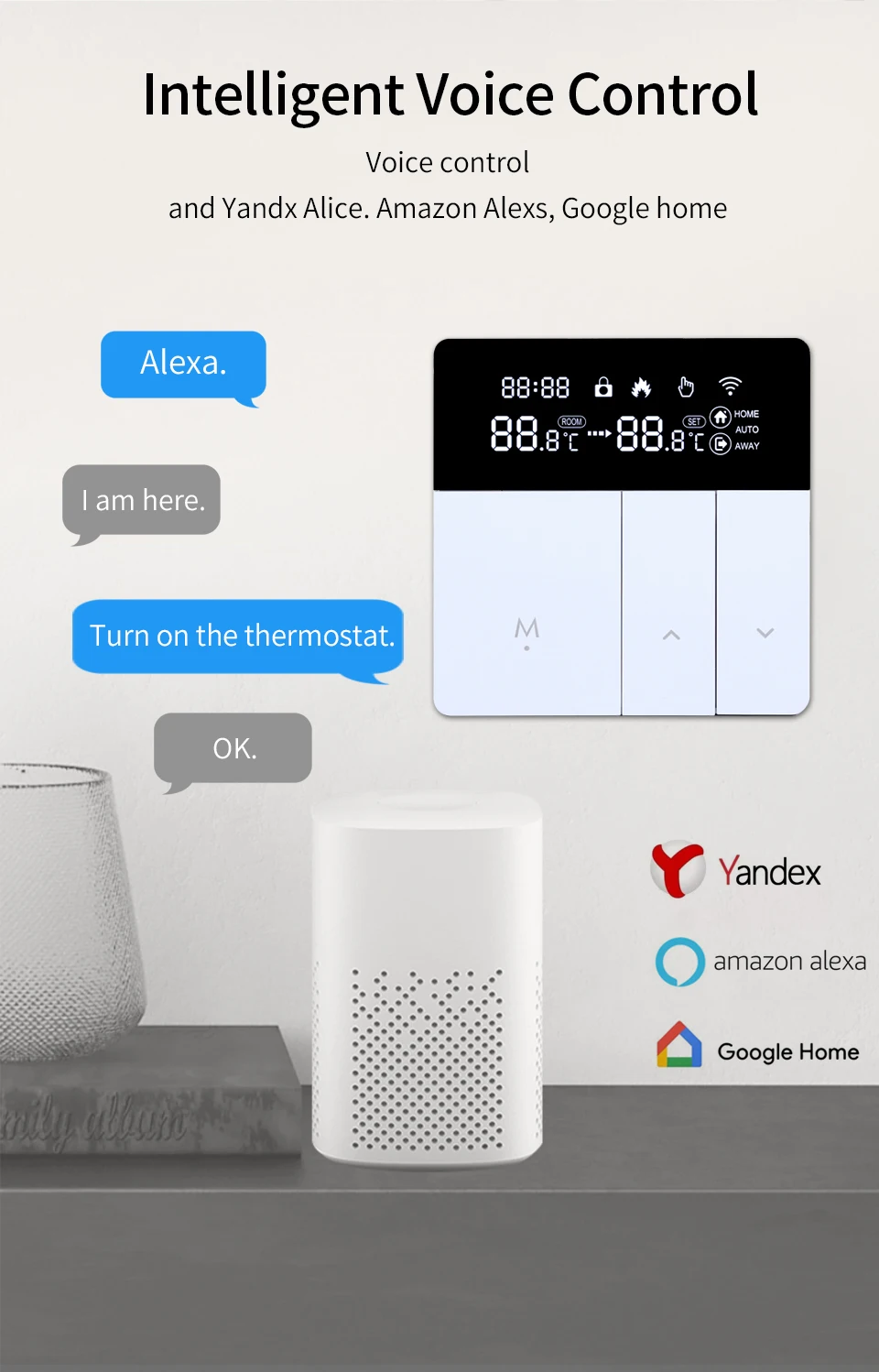 • Voice Control: Yandex alice, Alexa, Google home