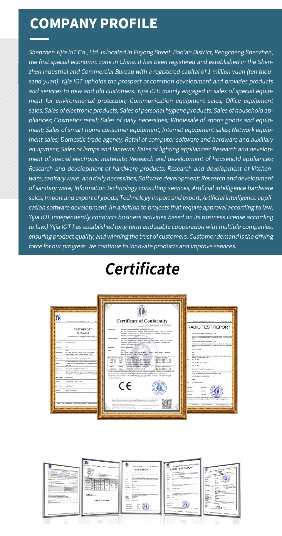 • Certification: CE