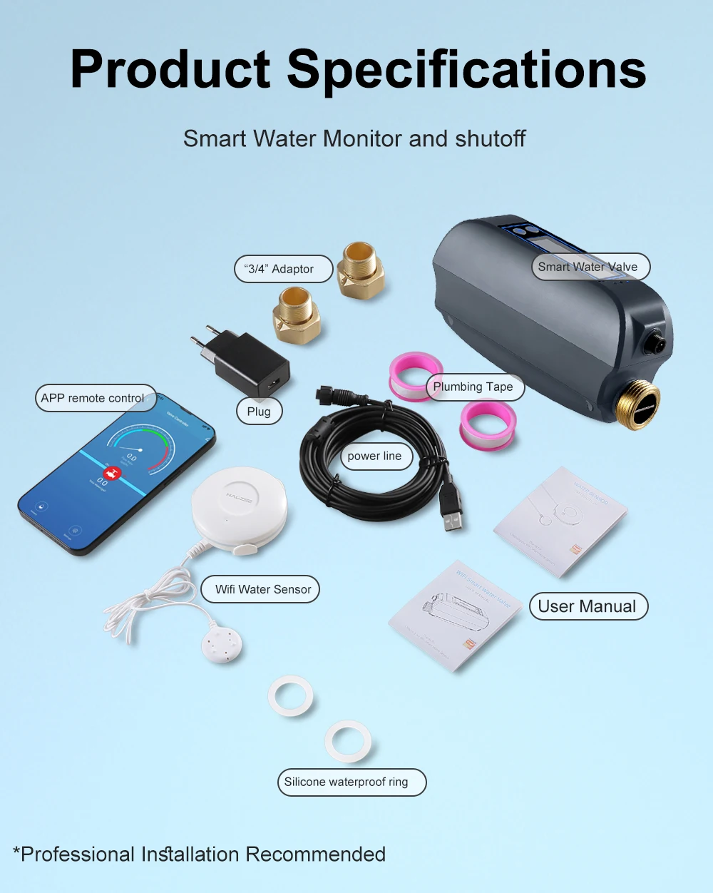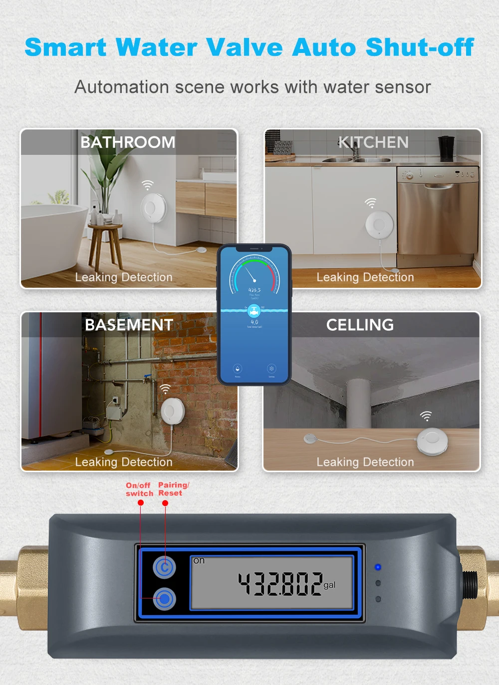 les éclats de tuyaux, la valve d’eau peut fermer automatiquement, pour économiser de l’eau et protéger votre maison