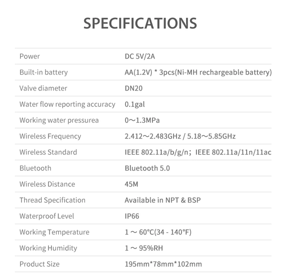 Fonction Wifi et télécommande APP : la vanne d’eau intelligente Wifi peut se connecte à Wifi 2,4 Ghz et 5 Ghz,