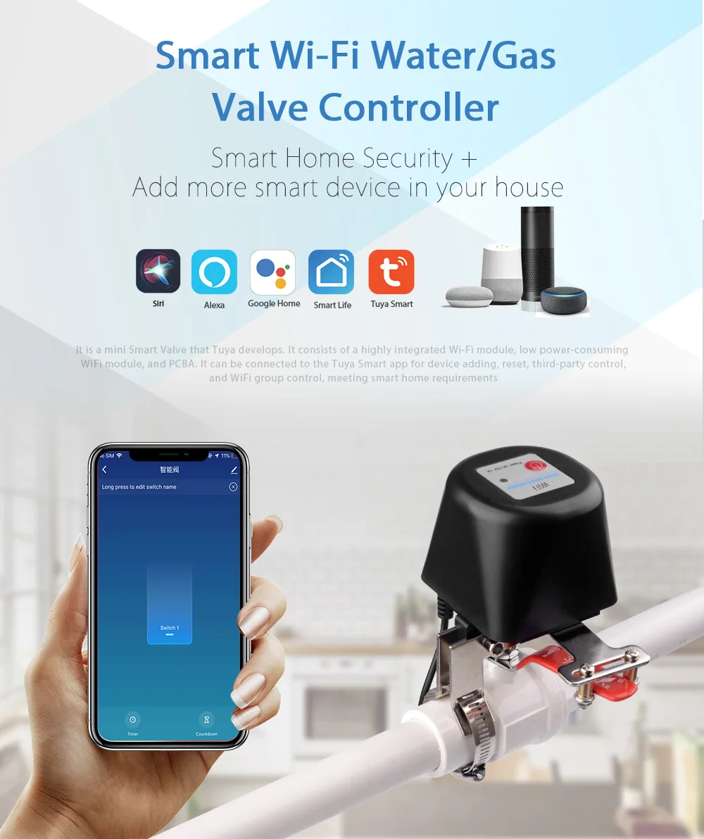 TUYA – vanne d’eau WI-FI pour maison intelligente, vanne d’air, vanne de Handball mécanique intelligente, interrupteur, commande vocale