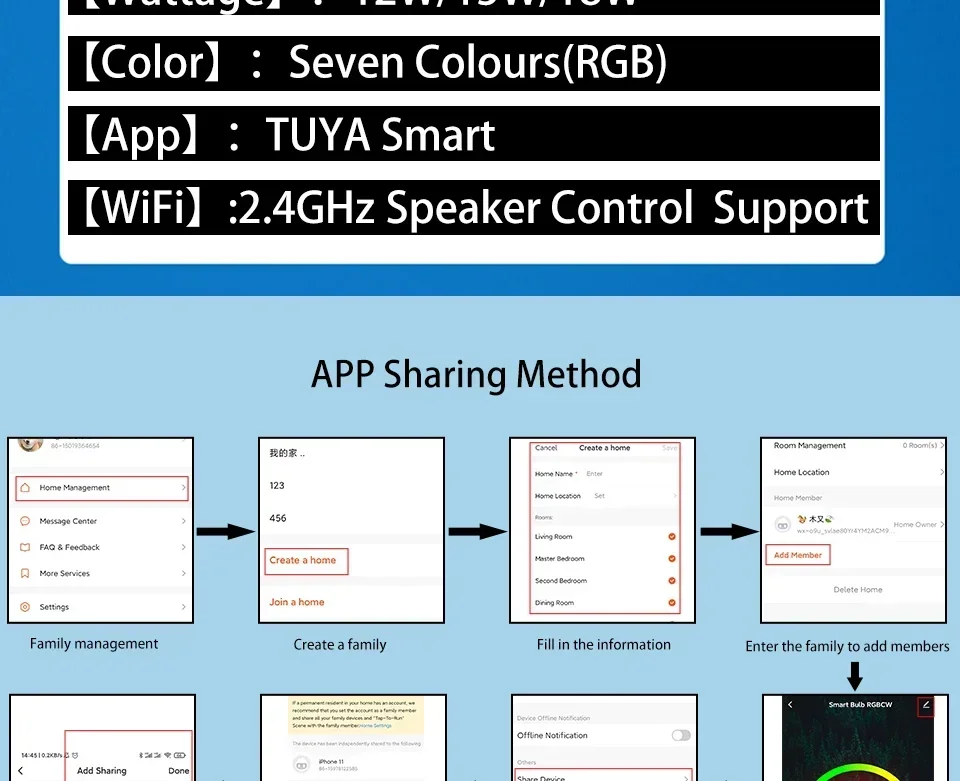 Partager le contrôle de la ampoule avec la famille et les amis pour contrôler les lumières ensemble.