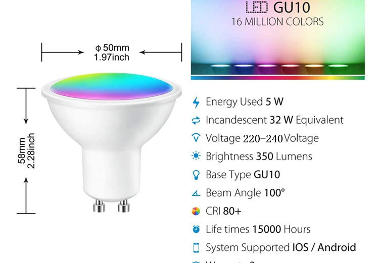 Soyez le premier à laisser votre avis sur “Tuya WiFi GU10 ampoule LED intelligente ampoule Bluetooth à intensité variable lampes Smart Life App contrôle projecteur ampoule fonctionne avec Alexa Google”