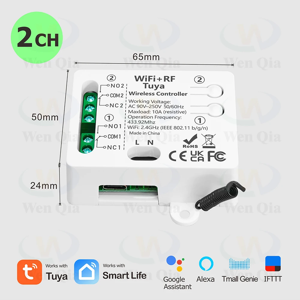 Tuya WiFi RF Smart Motor Switch Light Switch 110V 220V 230V 10A 2 Channels 1000m Control Range support Alexa Google Home,for Lamp Motor Fan garage door…