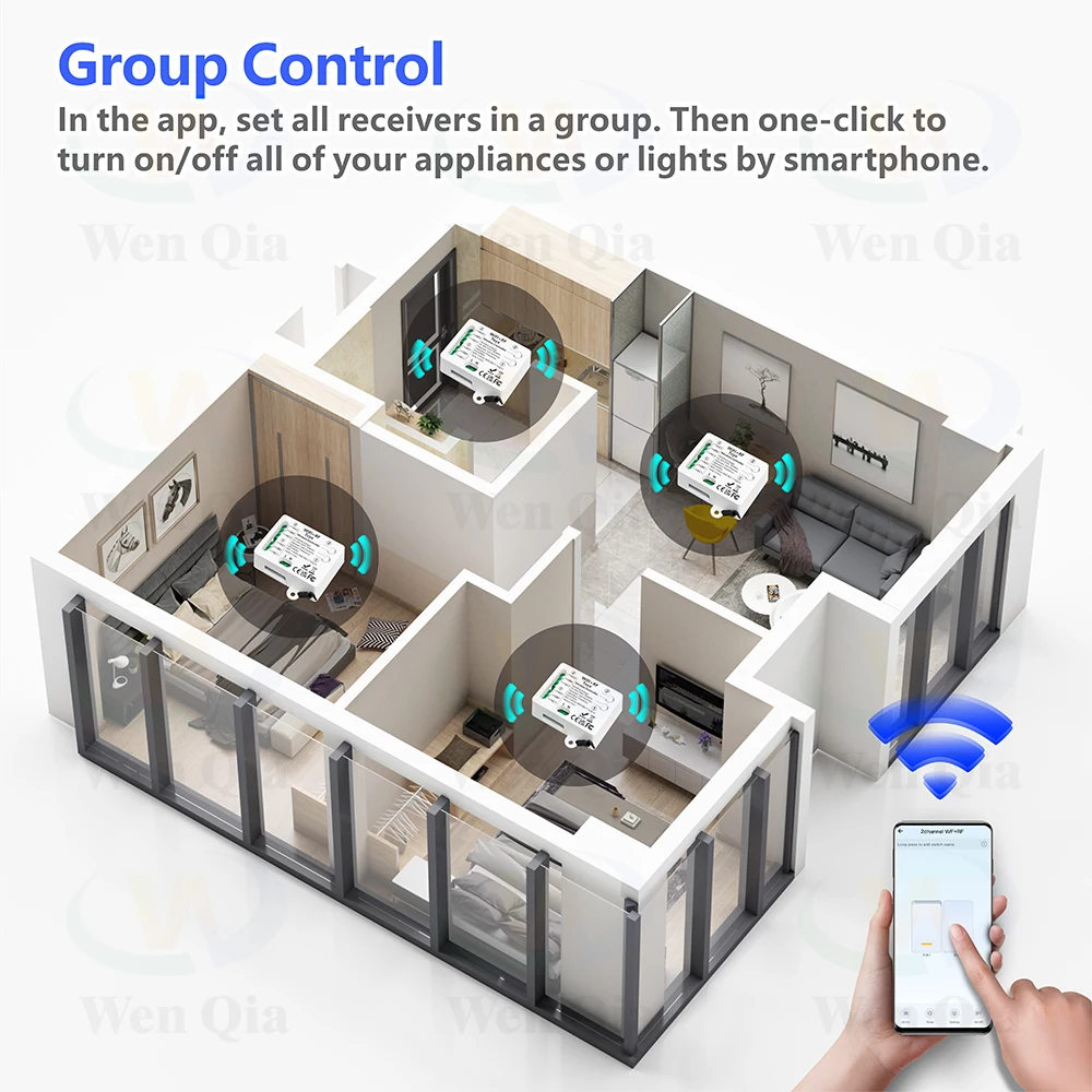 The receiver supports RF433MHZ remote controller control, and the control range can reach 1000m in open areas.