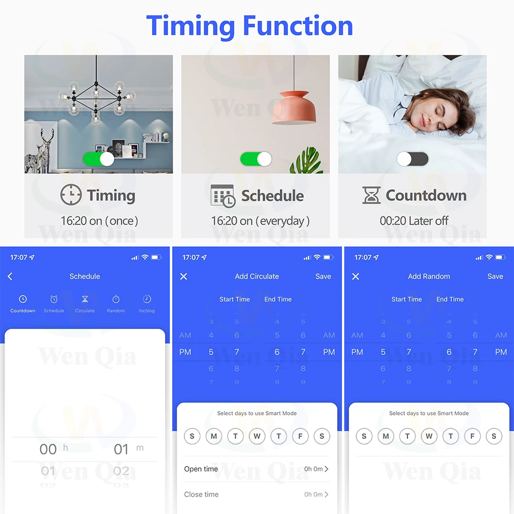 ●You can set timers/countdowns/schedules or create usage scenarios, for example you can set lights to automatically turn on at dusk and turn off at dawn.