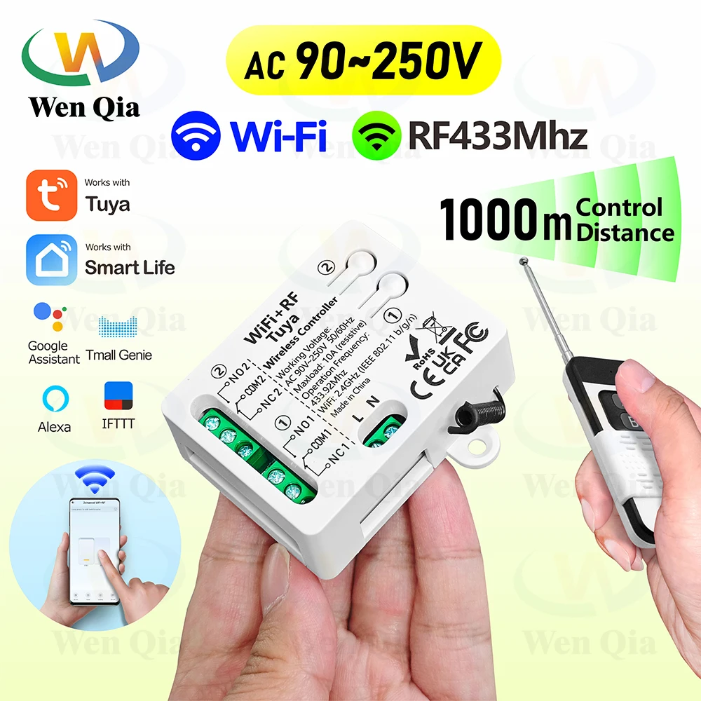 Tuya WiFi RF Smart Motor Switch Light Switch 110V 220V 230V 10A 2 Channels 1000m Control Range support Alexa Google Home,for Lamp Motor Fan garage door…