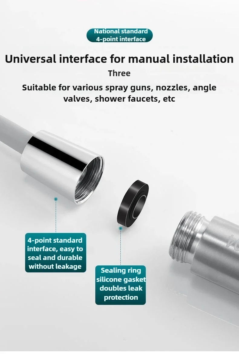 3.Universel pour l’interface de douche, peut être connecté au bidet, à la vanne d’angle du pistolet pulvérisateur de toilette, etc.