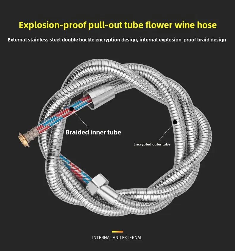 • Matériau antidéflagrant:Fabriqué en acier inoxydable et en cuivre, ce tuyau de douche assure sécurité et durabilité, le rendant résistant aux explosions.