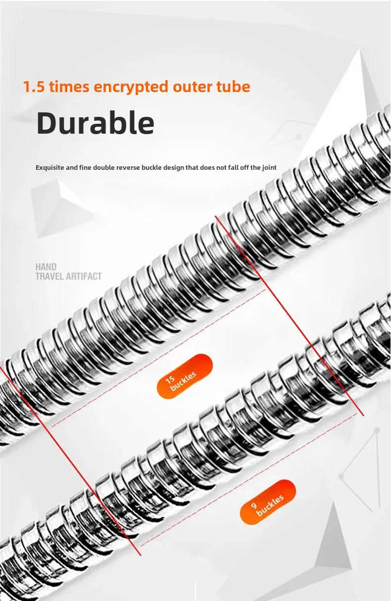 • Construction en acier inoxydable:Fabriqué en acier inoxydable de haute qualité, ce tuyau de douche est résistant à la corrosion, assurant une utilisation durable.
